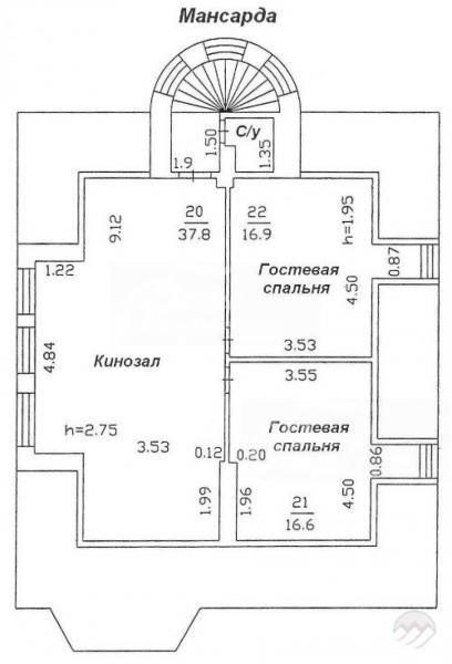 3-ий этаж: кинозал 38 кв.м, две гостевых спальни 17 кв.м и 16.6 кв.м, туалет, ванная.