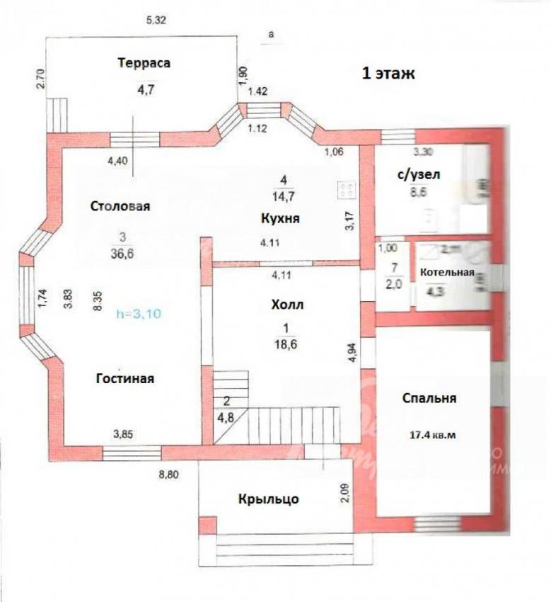 Спален: 5. С/узлов: 3. Комнат всего: 5.