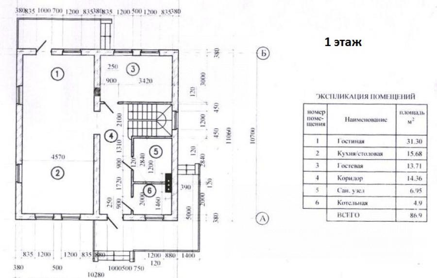 1-ый этаж: гостиная 31 кв.м с камином и выходом на террасу, кухня-столовая 16 кв.м, гостевая спальня 14 кв.м, с/узел 7 кв.м