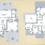 1-ый этаж: крыльцо 9.2 кв.м, тамбур 12 кв.м, гардеробная 11 кв.м, холл 49 кв.м, кухня-столовая 47.6 кв.м с выходом на террасу 46.8 кв.м, гостиная 42.8 кв.м , спальня 20 кв.м с ванной комнатой 8 кв.м и гардеробной 8 кв.м, постирочная 10 кв.м с выходом в сад, котельная 11 кв.м, санузел 3 кв.м; гараж 48.5 кв.м, навес 47 кв.м на 2 автомобиля, котельная 11.4 кв.м