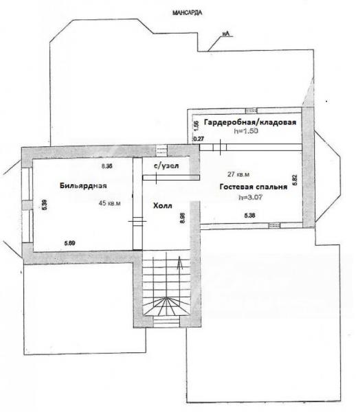 3-ий этаж: бильярдная с с/узлом - 45 кв.м, гостевая спальня 27 кв.м с гардеробной