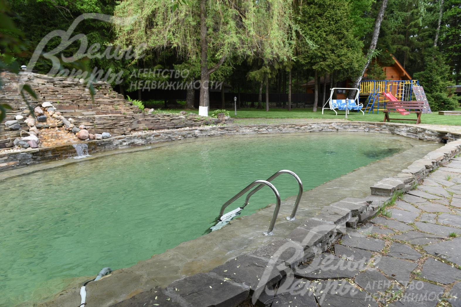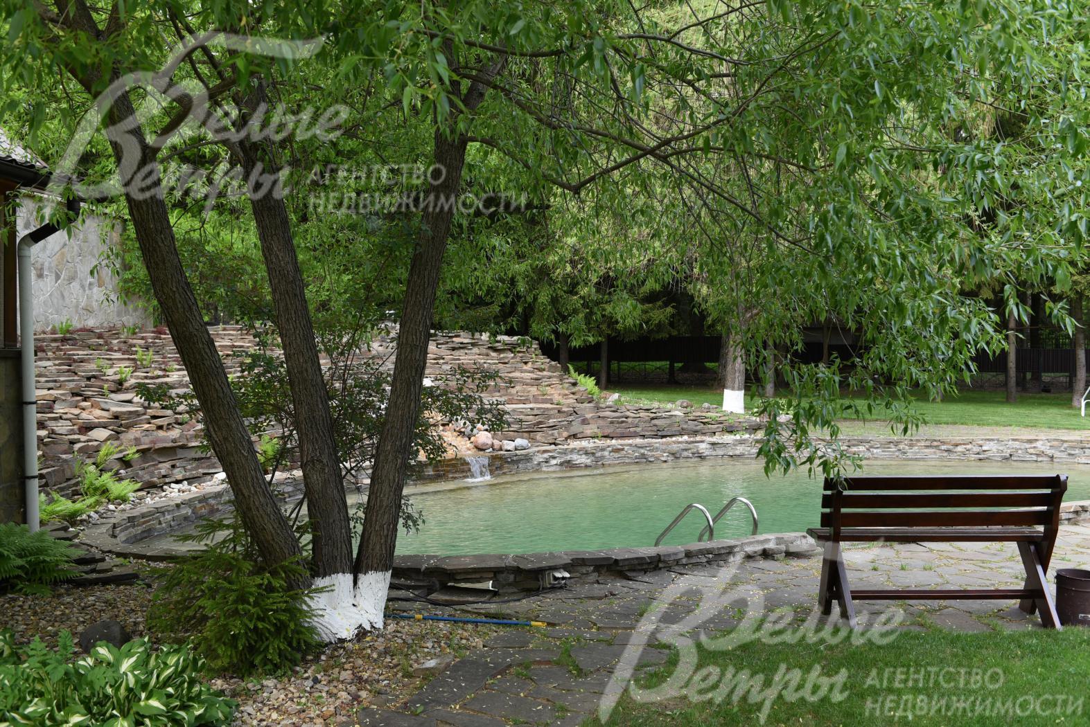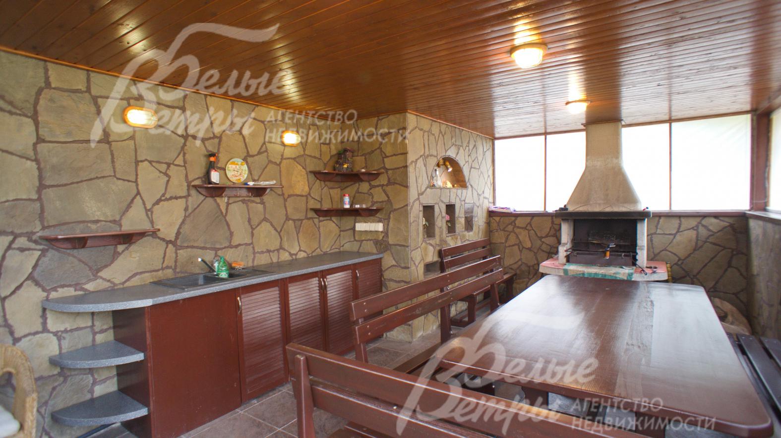 Опции: машиномест: 2, бассейн, баня, сауна, купель, квартира для персонала, веранда, камин, холодный подвал, второй свет, бильярдная, зимний сад, парковка на 3 м/м, мастерская, теплица, вольер для собак, беседка для барбекю с летней кухней и грилем, 2 небольшие беседки (одна возле дома, другая в дальней части участка- в лесу).