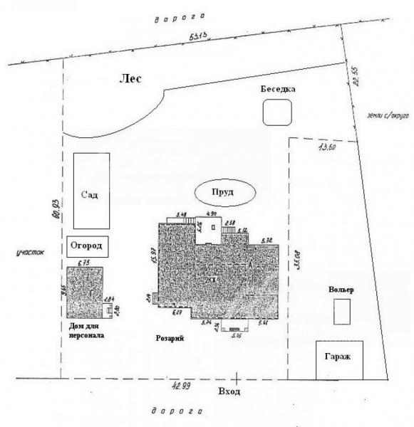 Дополнительные строения: - Отдельностоящий дом для обслуживающего персонала 50 кв.м: прихожая 6 кв.м, котельная 15 кв.м, студия 35 кв.м.