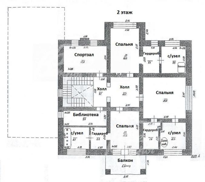 2-ой этаж: холл 20 кв.м, тренажерный зал 18 кв.м, библиотека-кабинет 10 кв.м, Главная спальня 21 кв.м с ванной 10 кв.м и гардеробной 6.6 кв.м, спальня 27 кв.м с с/узлом 10 кв.м и гардеробной 6.6 кв.м, спальня 17 кв.м с ванной 8.5 кв.м, гардеробной 5 кв.м и балконом 10 кв.м