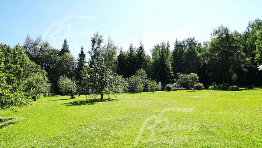2 яблони, груша, слива, 4 вишни, жимолость, малина, смородина, большая клубничная грядка, декоративный кустарник