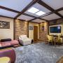 3-ий этаж: мансардное помещение около 60 кв.м, включает помещение свободного назначения (кинозал) , с 4 мансардными окнами и высотой потолков от 170 до 290 см, с вентиляцией и кондиционером; также кладовая и чемоданная