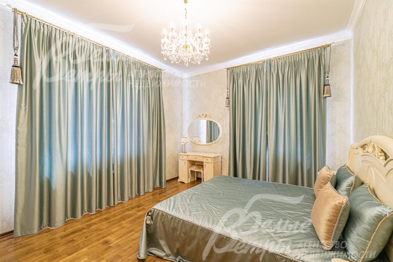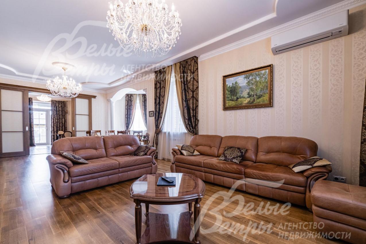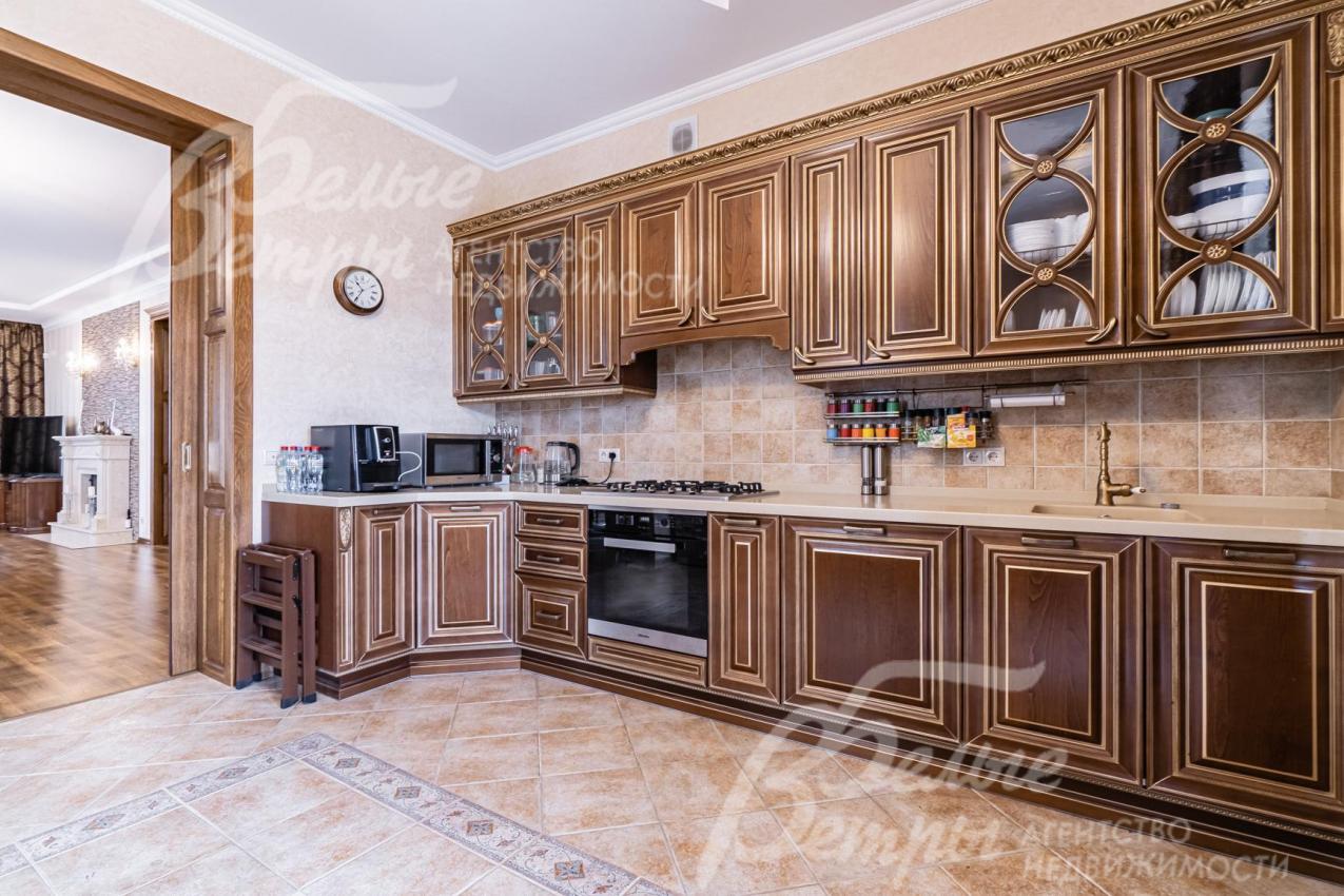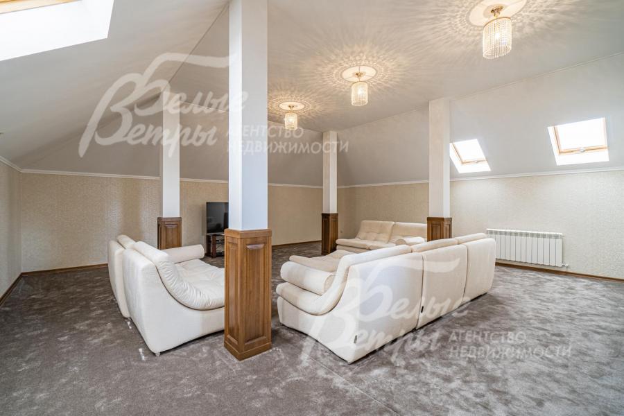 Мебель, оборудование: импортная и частично отечественная (сделана под заказ) мебель. В гостиной раскладывающийся (на пульте) кожаный диван с реклайнером и кресло, качественные шторы и тюль, телевизор SONY (Smart, 65 дюймов, с камерой), дорогие хрустальные люстры; спальный гарнитур от итальянской фабрики Camelgroup в классическом стиле (ручная резьба, подъемный механизм, кованые элементы). На мансарде пол покрыт антистатическим ковролином, очень удобная мягкая мебель (3 дивана) фабрики Albert&Shtein. Кухонный гарнитур в классическом стиле глубиной 75 см, фасады из массива ореха с резным золоченым орнаментом; высокая цельная с раковиной столешница из искусственного камня, 5-ти конфорочная газовая плита Miele c духовкой, двустворчатый холодильник. Итальянские, из массива стол для завтраков (с 4 стульями) в кухне и столовый гарнитур (с 8 стульями) для приема гостей в столовой;