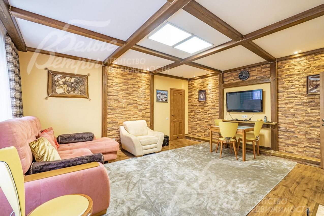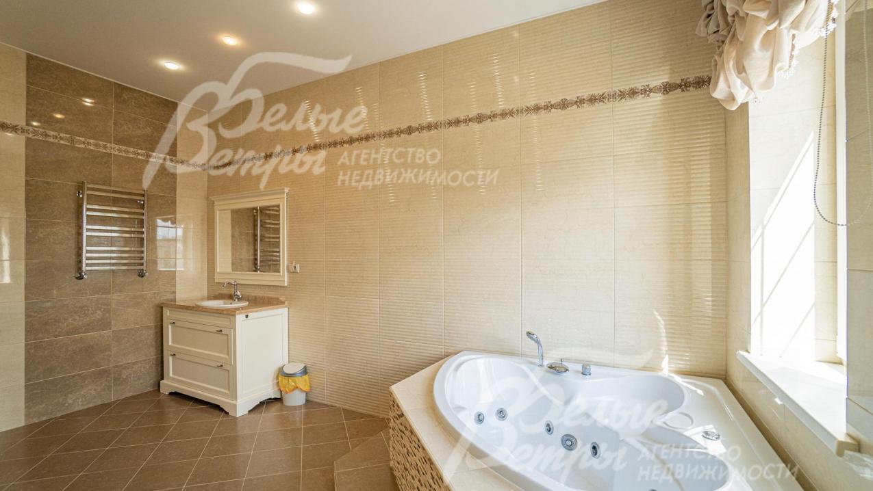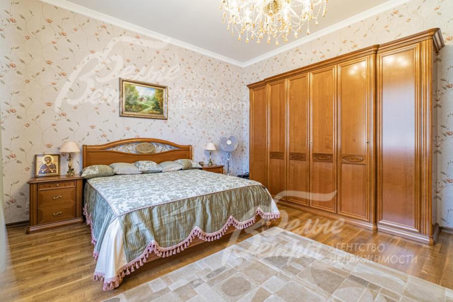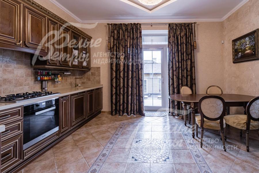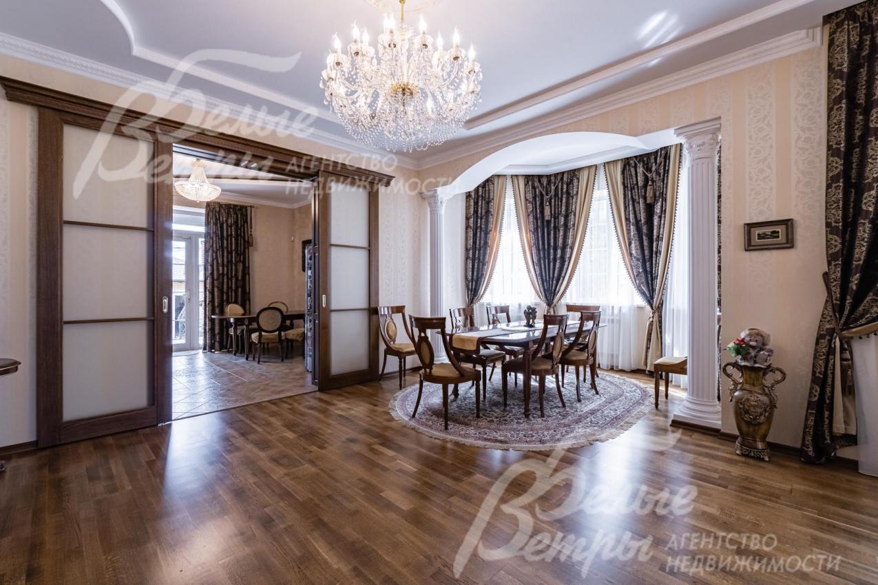Мебель, оборудование: импортная и частично отечественная (сделана под заказ) мебель. В гостиной раскладывающийся (на пульте) кожаный диван с реклайнером и кресло, качественные шторы и тюль, телевизор SONY (Smart, 65 дюймов, с камерой), дорогие хрустальные люстры; спальный гарнитур от итальянской фабрики Camelgroup в классическом стиле (ручная резьба, подъемный механизм, кованые элементы). На мансарде пол покрыт антистатическим ковролином, очень удобная мягкая мебель (3 дивана) фабрики Albert&Shtein. Кухонный гарнитур в классическом стиле глубиной 75 см, фасады из массива ореха с резным золоченым орнаментом; высокая цельная с раковиной столешница из искусственного камня, 5-ти конфорочная газовая плита Miele c духовкой, двустворчатый холодильник. Итальянские, из массива стол для завтраков (с 4 стульями) в кухне и столовый гарнитур (с 8 стульями) для приема гостей в столовой;