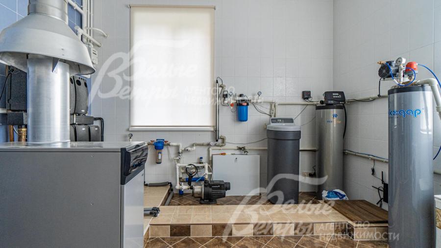 Инженерное обеспечение: котел Baxi 62 кВт, бойлер Reflex на 300л; многоступенчатая станция водоочистки Экодар.