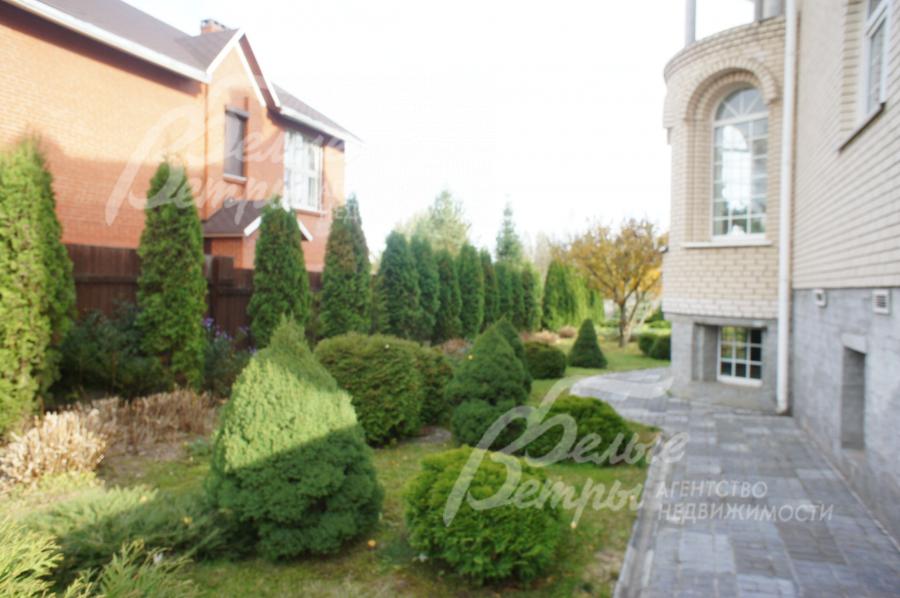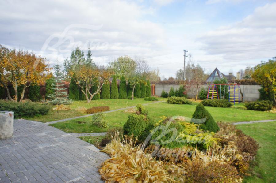 Благоустройство участка: на участке газон, высажены деревья (ели - 10 шт., туи - 40 шт., яблони, каштаны), декоративные кустарники, цветники, дорожки, сделан дренаж участка.