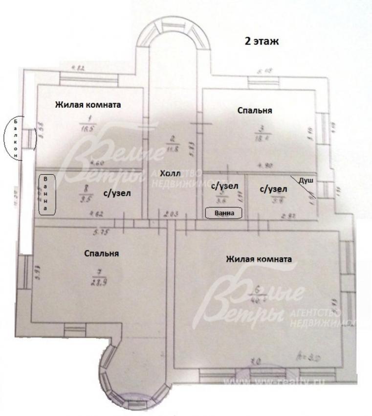 Спален: 6. С/узлов полных: 5. С/узлов неполных: 1. Комнат всего: 8.