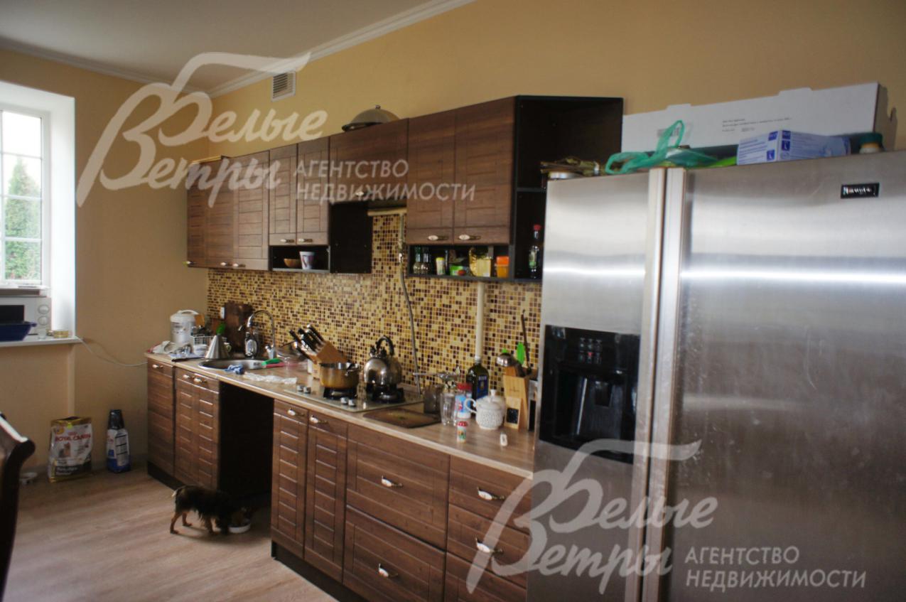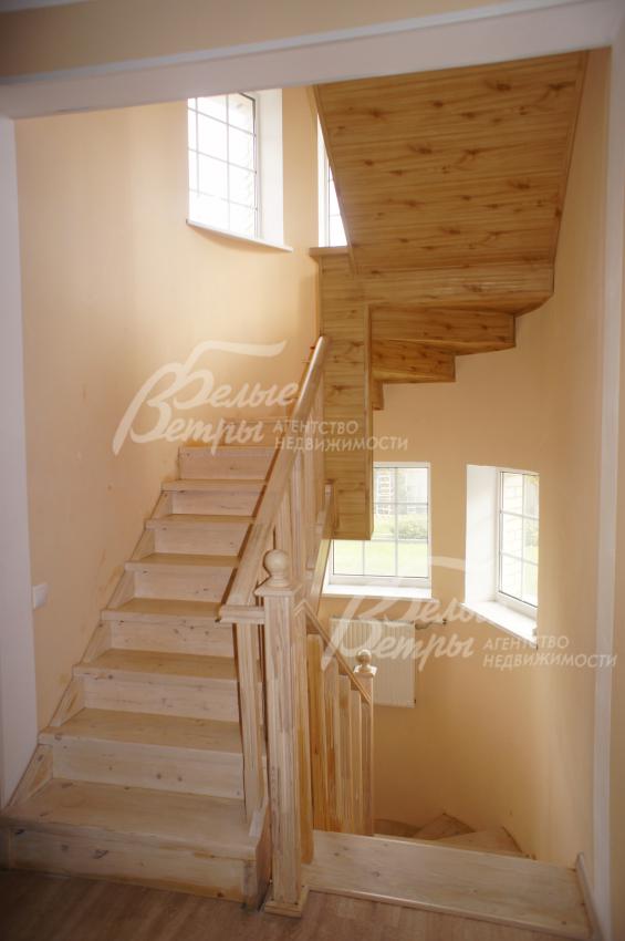 Описание внутренней отделки: практически вся отделка дома выполнена "под ключ" (цоколь - частично, мансарда - под отделку). Стены оклеены обоями, в некоторых помещениях окрашены. Пол - плитка на 1-м этаже (в холле, кухне, санузлах), паркет на 2-м этаже. Потолки окрашены. Лестничный марш деревянный - сосна, тонированная в светлый оттенок. Двери и подоконники деревянные (дуб). В доме установлена импортная сантехника (чешская).