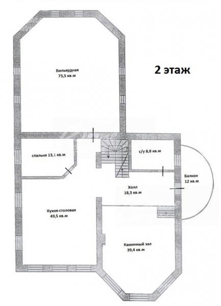 2-ой этаж: кабинет, кухня-столовая, каминный зал, с/узел, бильярдная, веранда