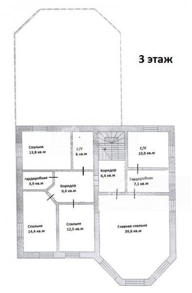 3-ий этаж: 3 спальни, с/узел, хозяйская спальня с с/узлом и гардеробной