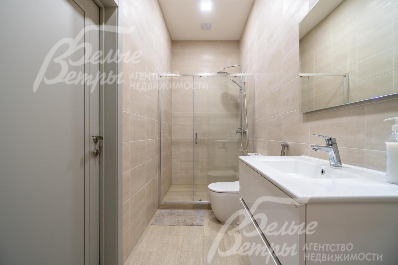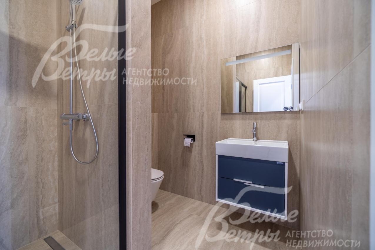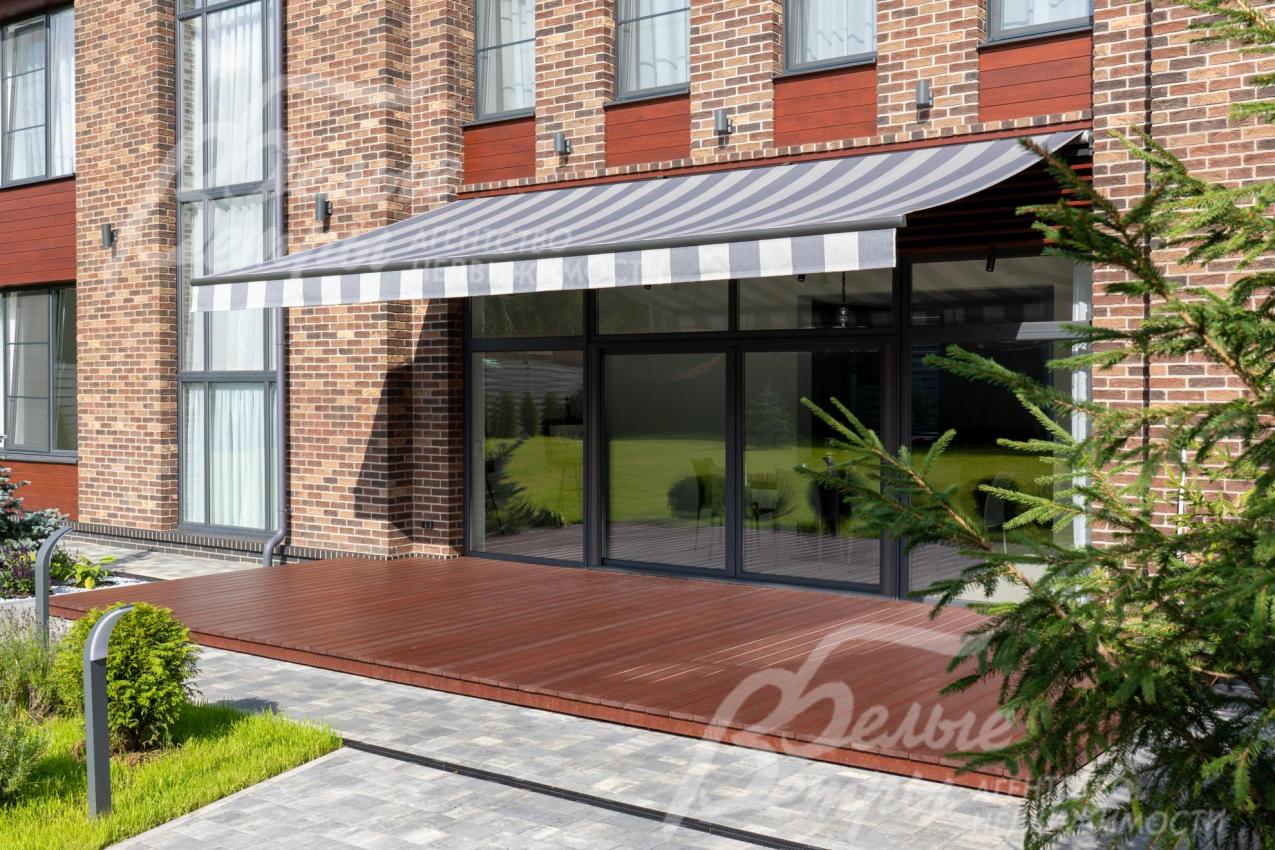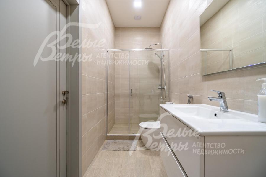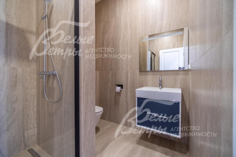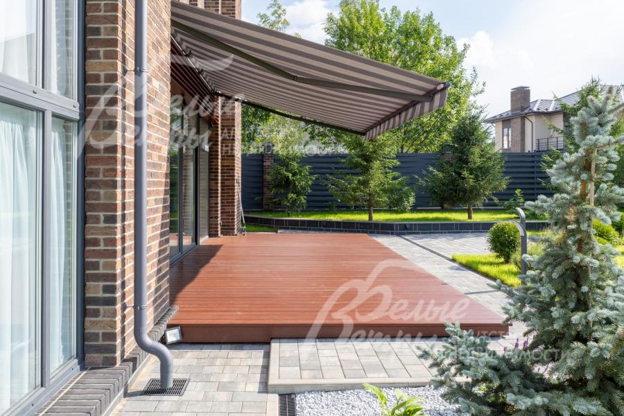 Описание внутренней отделки: интерьер дома выполнен по дизайнерскому проекту с элементами стиля лофт с применением дорогостоящих материалов высокого качества. В холлах стены отделаны декоративной плиткой «под фасадный кирпич», органично продолжающей внешнюю отделку дома в интерьере. Стены в других помещениях окрашены в благородный серый оттенок, приятный для глаз. Стены санузлов оформлены в едином стиле: от пола до потолка - бежевый керамогранит высшего сорта (Keramma Marazzi, имитация мрамора, внешние углы запилены под 45°). В мастер-спальне со стороны изголовья – дизайнерские обои. На полу 1-го этажа и в санузлах 2-го этажа – керамогранит (Keramma Marazzi) с водяным подогревом, в остальных помещениях – дубовая инженерная доска. На полу террасы – лиственница экстра-класса (пол террасы - на одном уровне с полом гостиной). Потолки из гипсокартона, в том числе подвесные, с теневым профилем и подсветкой вдоль карниза, со встроенными стильными потолочными светильниками. Установлены стальные панельные радиаторы белого и чёрного цвета (Kermi и Prado), розетки и выключатели Yung (Германия), в том числе мастер-выключатель. Интерьер дополнен межкомнатными дверьми из массива дуба (филёнчатые лакированные белого цвета с итальянской фурнитурой и с магнитными замками), входным порталом из ПВХ шириной 2 м от пола до потолка с двухкамерным стеклопакетом. На второй этаж ведёт парящая лестница на тонком стальном каркасе со ступенями из клееного дуба (толщина 4 см), ограждение – закаленное стекло, поручни – из массива дуба. В столовой и в спальне (спальня - над столовой) предусмотрена ниша для камина с выводом дымохода на кровлю. В гараже – мойка и вывод воды под шланг: сделан уклон, позволяющий мыть автомобили (стены до потолка отделаны керамогранитом). В котельной – техническая мойка (лапомойка). Фасад дома оснащен современной системой архитектурной подсветки, которая разделена на 4 зоны (ночное фасадное освещение, фасадное освещение между этажами, освещение вдоль дорожек и на заборе) с управлением через пульт. Дорожка от входа на участок до двери дома и площадка перед гаражом – с электрическим подогревом (3 контура). Маркиза на террасе (Франция) 5,5×3,5 м.