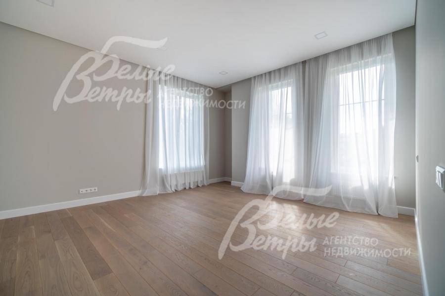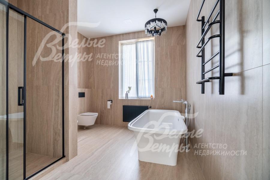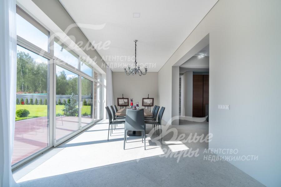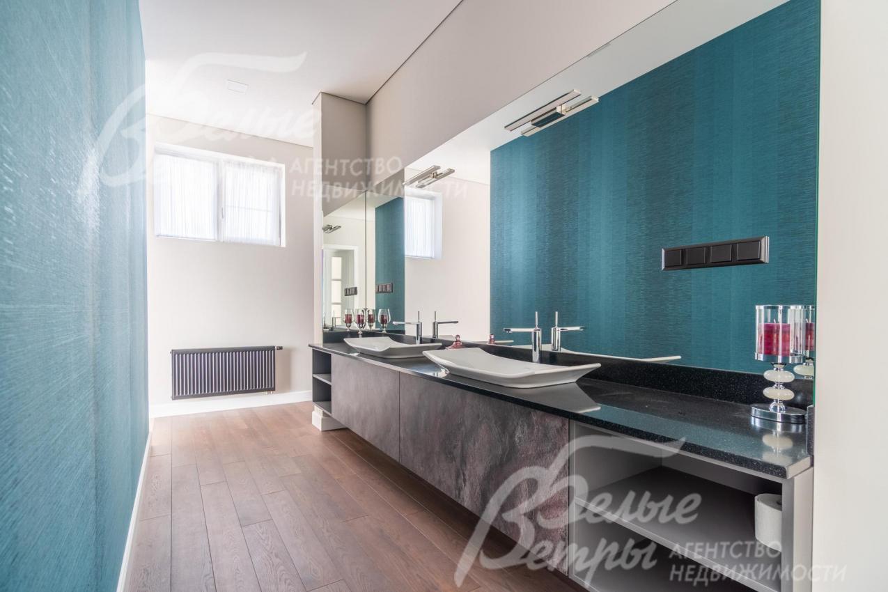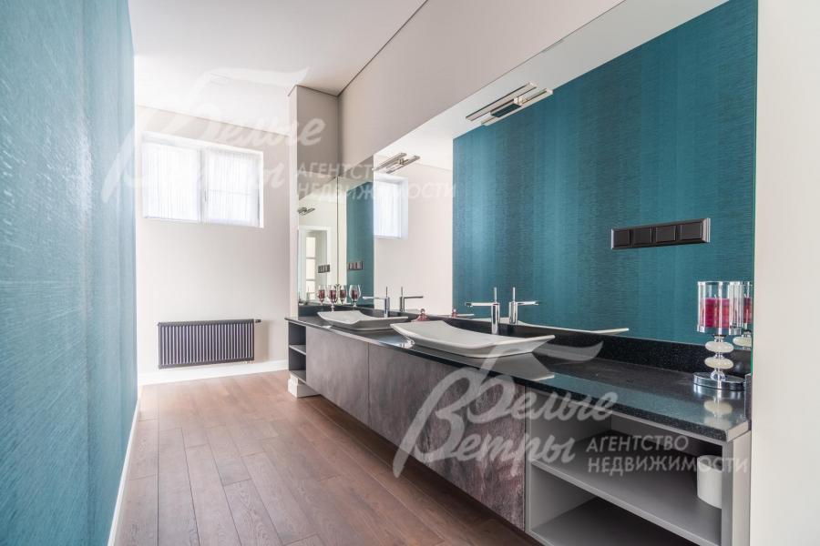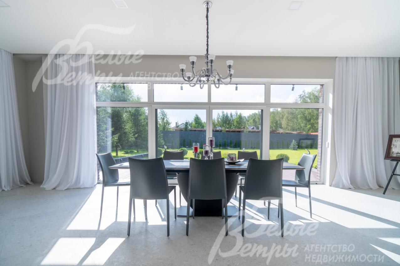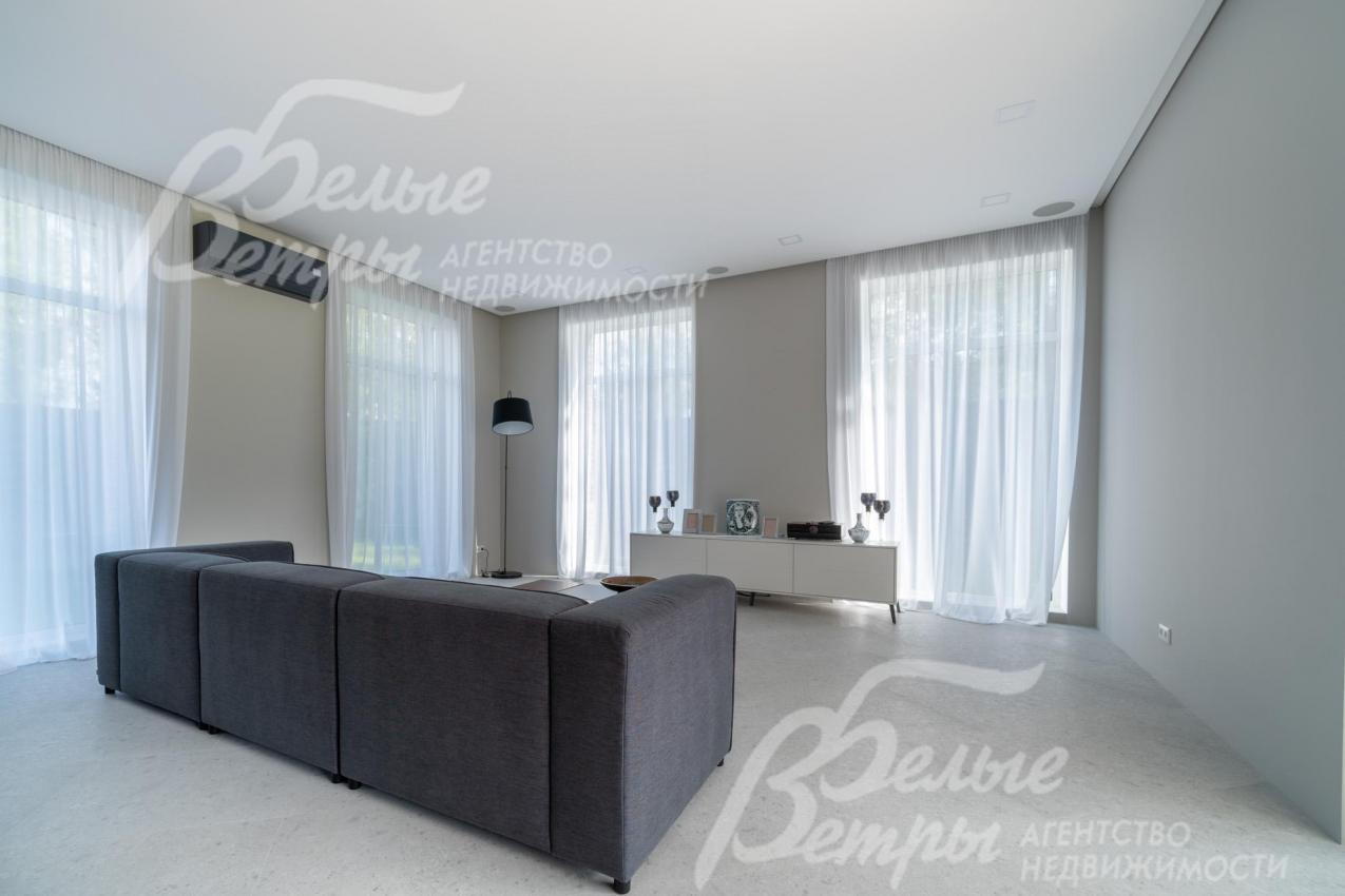 Мебель, оборудование: дом полностью оборудован сантехникой и мебелью в общих помещениях. На кухне – гарнитур с фасадами из шпона ореха, столешница Compact HPL FunderMax, встроенная техника SMEG (двухкамерный холодильник, духовой шкаф, СВЧ, широкая посудомоечная машина, электрическая варочная индукционная поверхность (на острове, 5 конфорок)), измельчитель, потолочная вытяжка (над варочной поверхностью), врезная мойка со смесителем Omoikiri, выдвижные системы хранения – «волшебные» уголки, встроенные выезжающие из столешницы блоки розеток (в трех местах). Кухонный остров 240×120 см – с полубарным столом на 3 персоны и стульями (4 шт.), с фасадами из шпона натурального черного сланца, с 2 витринами с подсветкой. В столовой – раздвижной обеденный стол (BoConcept (Дания) на 8-12 персон с кожаными стульями. В гостиной вся мебель BoConcept (Дания): большой диван, журнальный столик, трансформируемый под кофейный, тумба под телевизор, напольный светильник. В прихожей установлен встроенный шкаф до потолка с зоной для обуви на теплом полу. В гардеробной мастер-спальни - система хранения открытого типа. Во всех комнатах – тюль на скрытом карнизе. Светильники и люстры - от немецких производителей. В квартире персонала: кухонный гарнитур с техникой (холодильник, варочная поверхность, духовка), встроенный шкаф в прихожей и сантехника. Вся сантехника от Jacob Delafon (производство- Франция): унитазы, раковины, душевые смесители с терморегуляторами, гигиенические души, также электрические полотенцесушители, трапы с двойным затвором (сухой и мокрый): фурнитура (профили душевых кабин, кнопки инсталляций, держатели бумаги, полотенцесушители) – черного цвета; в мастер-блоке - отдельно-стоящая ванна из искусственного камня, биде.