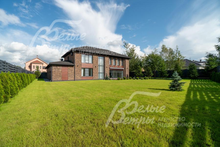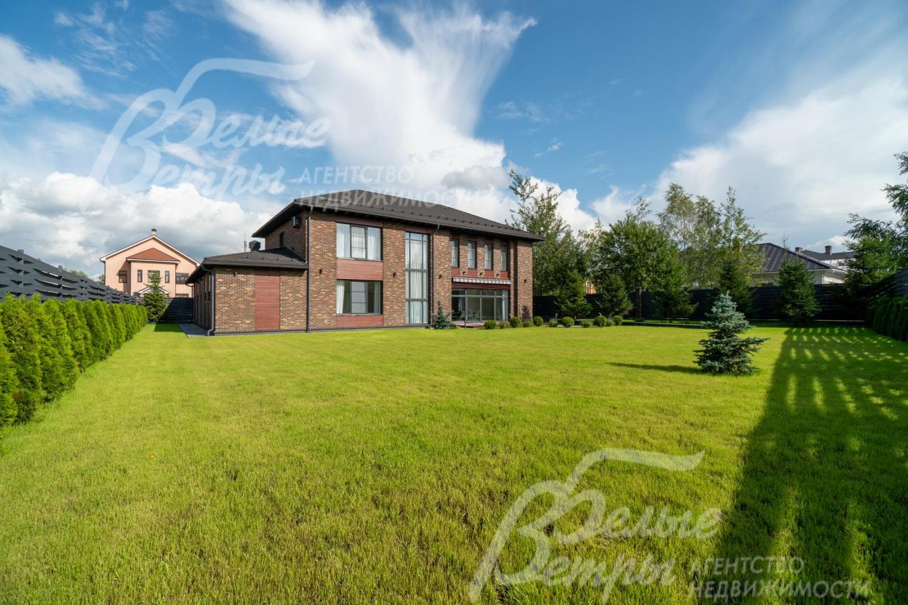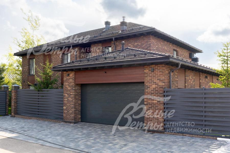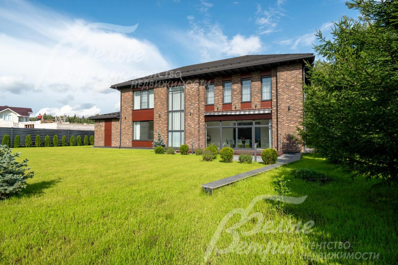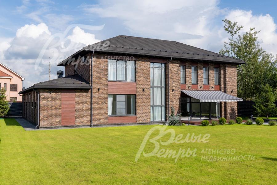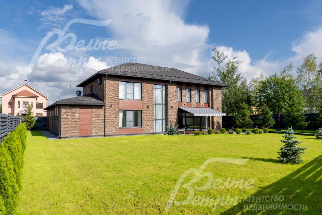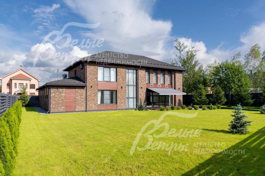 Меблированный дом с привлекательной современной архитектурой в стилистике Ф. Л. Райта, построен из дорогостоящих надёжных материалов, фасад облицован кирпичом ручной формовки со вставками из лиственницы экстра класса, оснащён передовыми инженерными системами. В доме – панорамные окна, 2хсветный холл, пять спален (одна – на первом этаже), большая терраса с маркизой, квартира для персонала. Интерьер дома выполнен по авторскому проекту с элегантным сочетанием минимализма и лофта. Дом стоит на зелёном участке с эффектным ландшафтным дизайном в 65 м от леса. Высажены ели, туи, лаванда, шалфей, цветы, газон. Есть автополив, теплый гараж на 2 авто и открытая парковка на 6 автомобилей. Охраняемый коттеджный посёлок с центральными коммуникациями, вблизи полная городская инфраструктура.