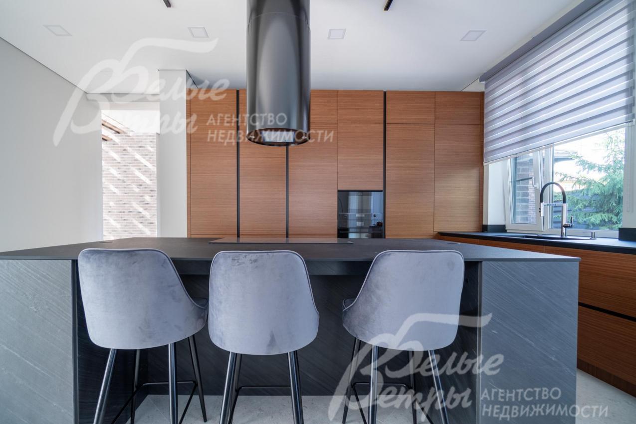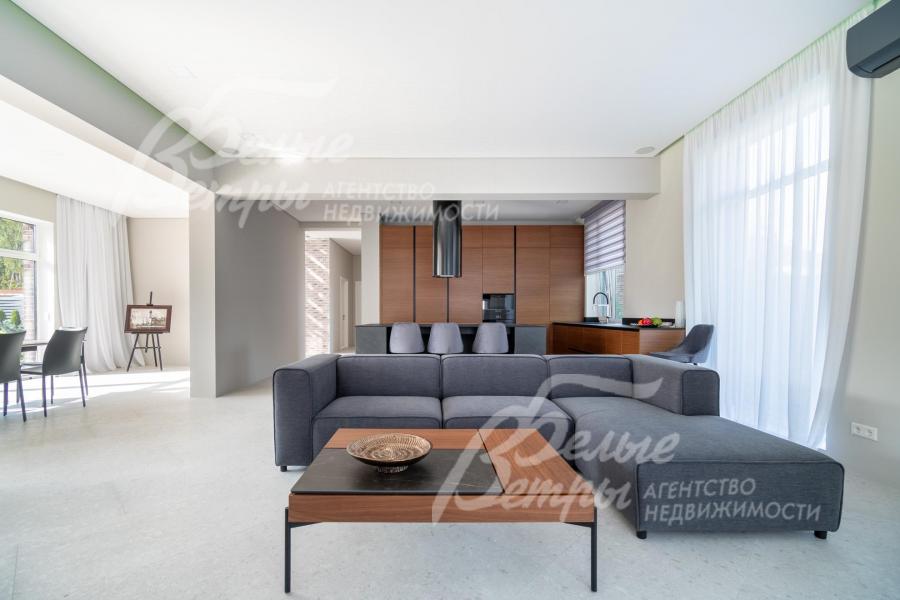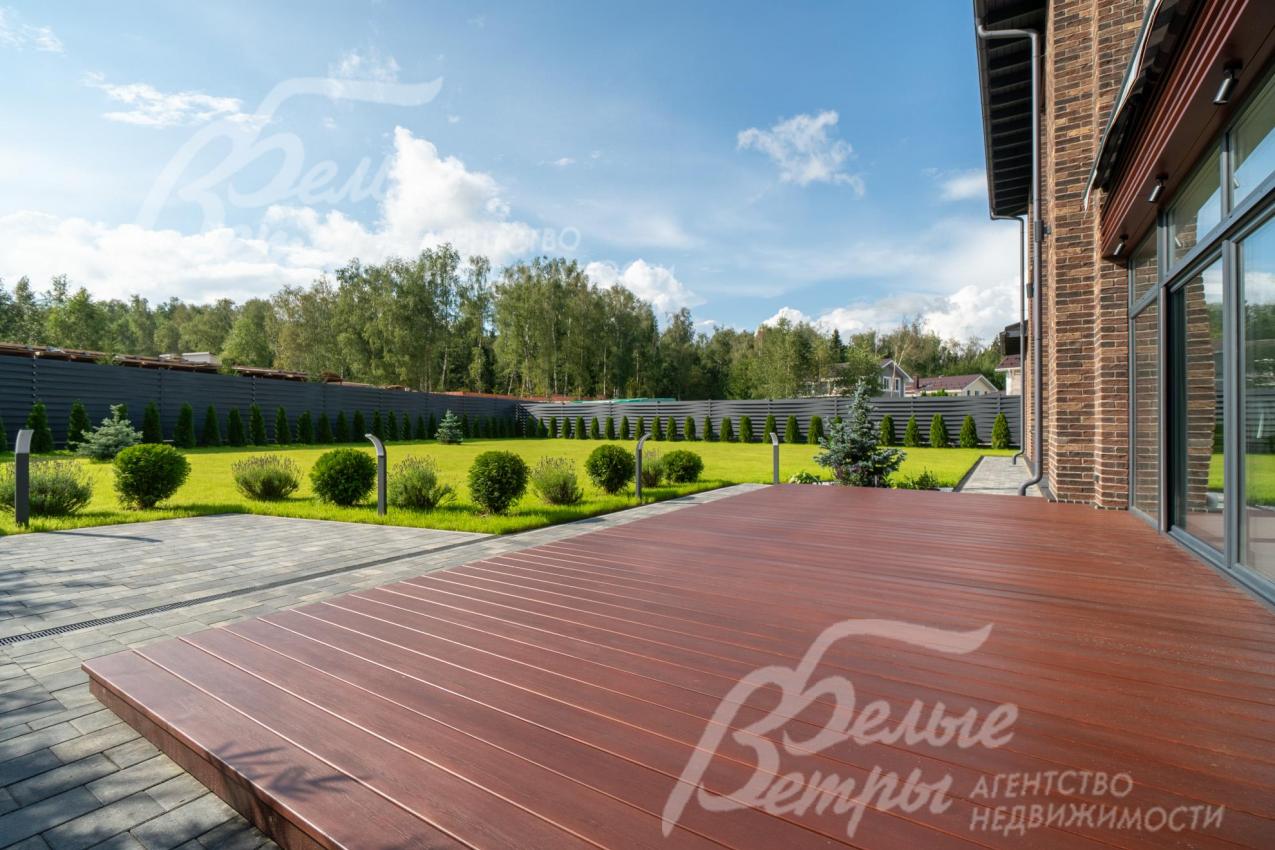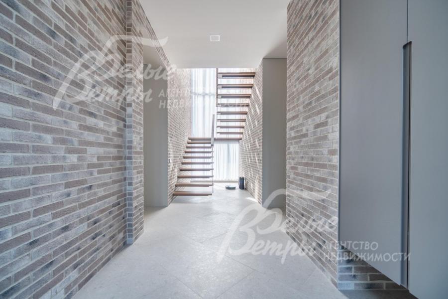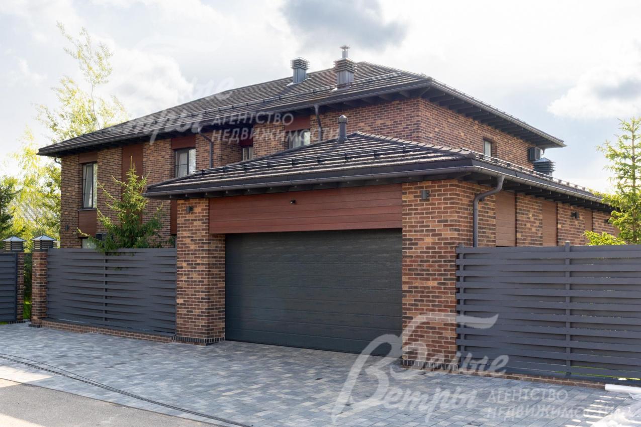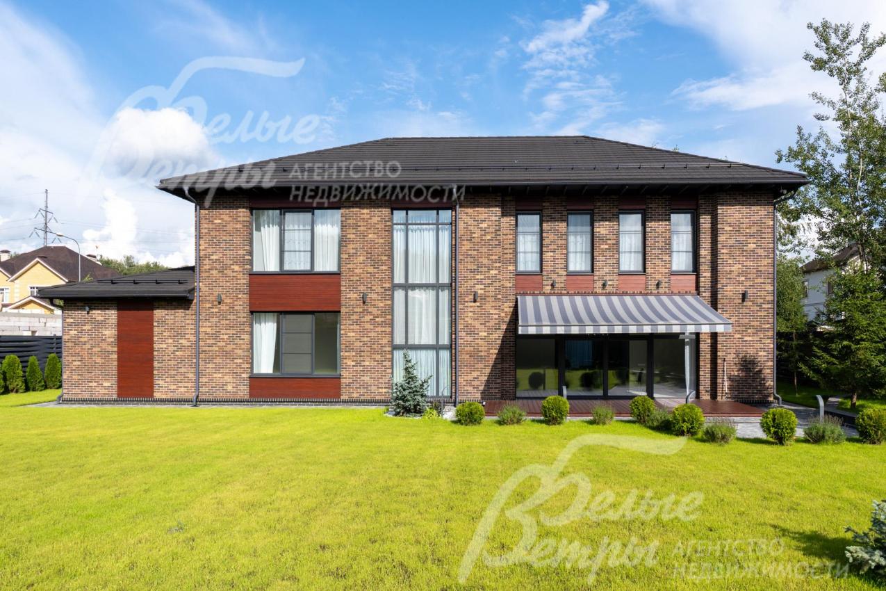 Меблированный дом с привлекательной современной архитектурой в стилистике Ф. Л. Райта, построен из дорогостоящих надёжных материалов, фасад облицован кирпичом ручной формовки со вставками из лиственницы экстра класса, оснащён передовыми инженерными системами. В доме – панорамные окна, 2хсветный холл, пять спален (одна – на первом этаже), большая терраса с маркизой, квартира для персонала. Интерьер дома выполнен по авторскому проекту с элегантным сочетанием минимализма и лофта. Дом стоит на зелёном участке с эффектным ландшафтным дизайном в 65 м от леса. Высажены ели, туи, лаванда, шалфей, цветы, газон. Есть автополив, теплый гараж на 2 авто и открытая парковка на 6 автомобилей. Охраняемый коттеджный посёлок с центральными коммуникациями, вблизи полная городская инфраструктура.