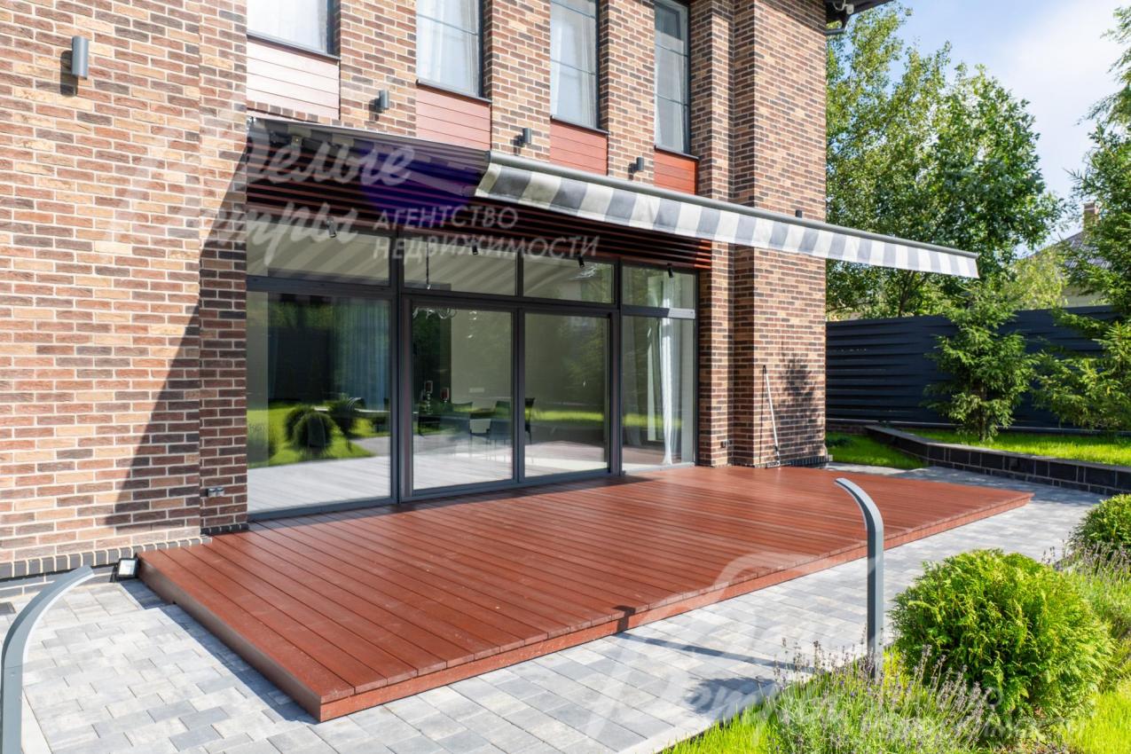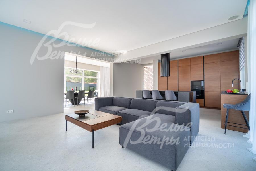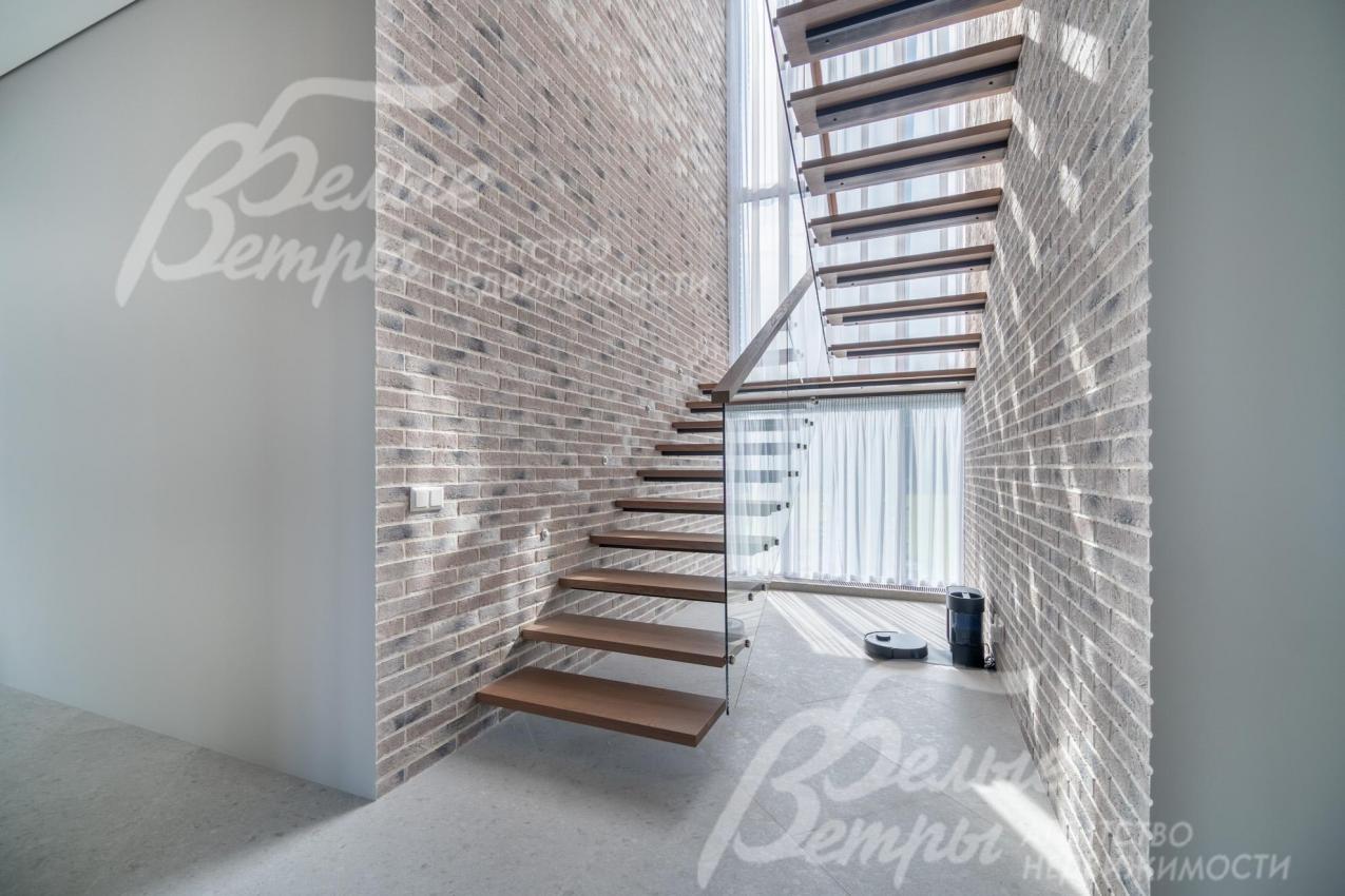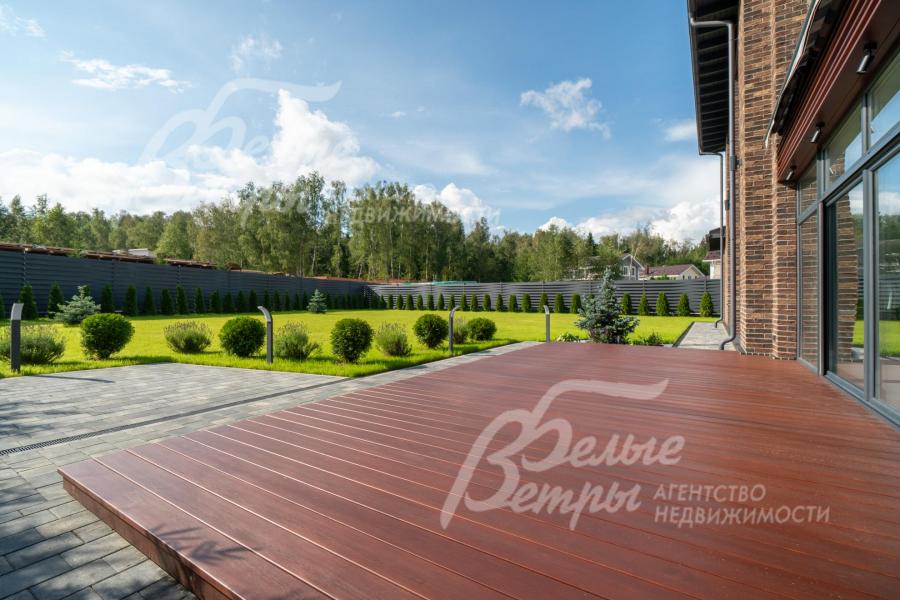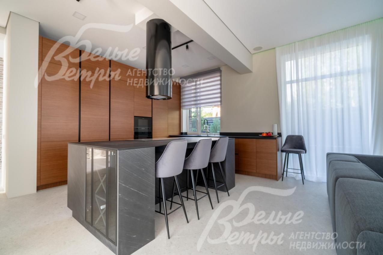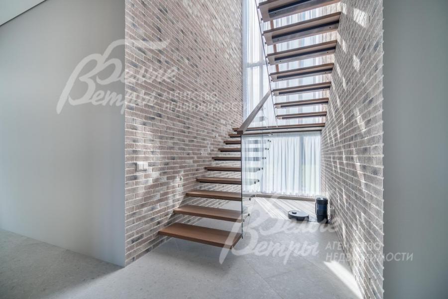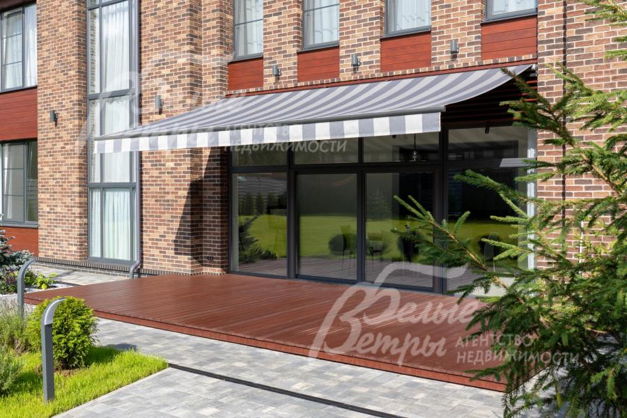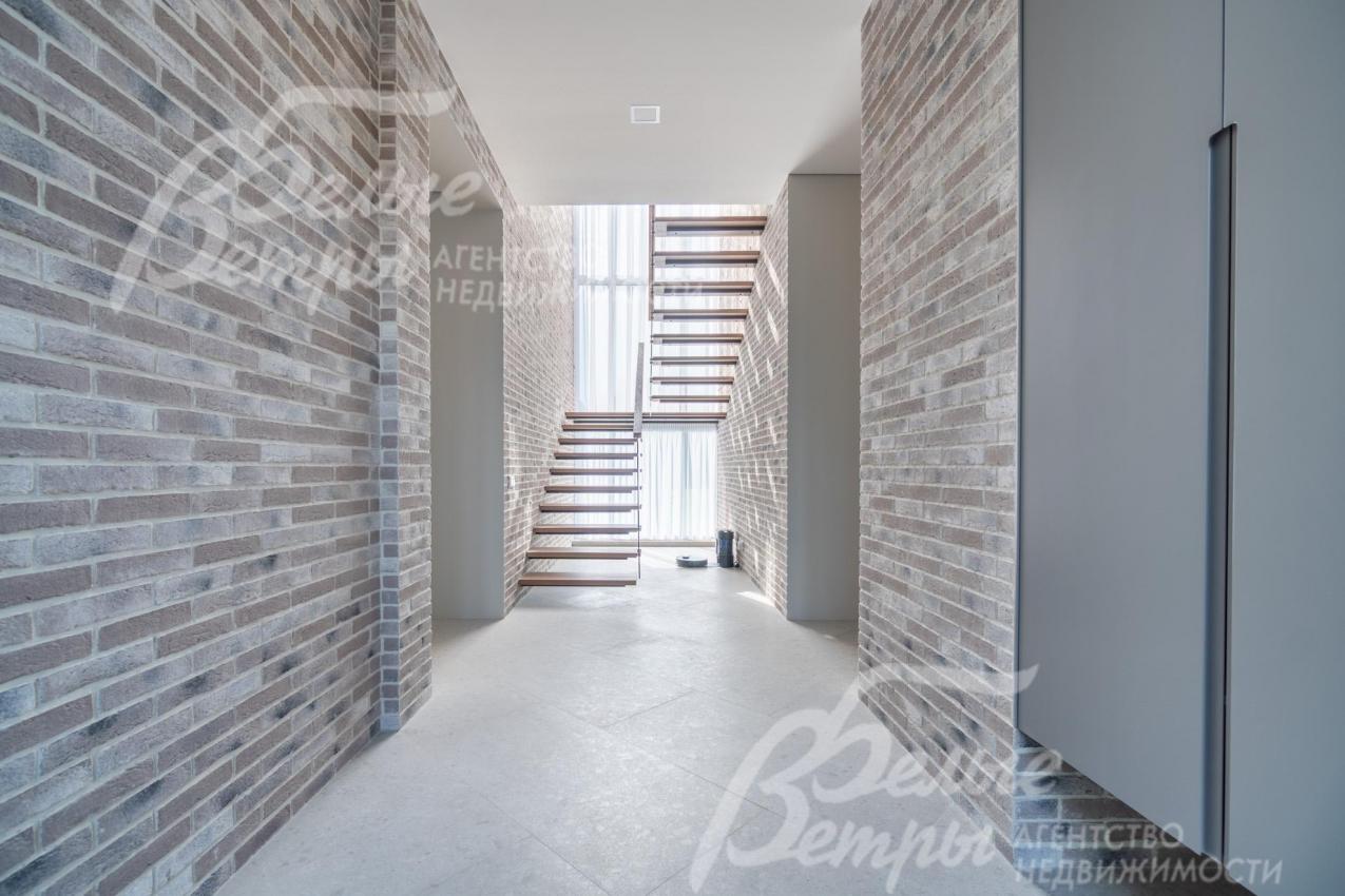 Меблированный дом с привлекательной современной архитектурой в стилистике Ф. Л. Райта, построен из дорогостоящих надёжных материалов, фасад облицован кирпичом ручной формовки со вставками из лиственницы экстра класса, оснащён передовыми инженерными системами. В доме – панорамные окна, 2хсветный холл, пять спален (одна – на первом этаже), большая терраса с маркизой, квартира для персонала. Интерьер дома выполнен по авторскому проекту с элегантным сочетанием минимализма и лофта. Дом стоит на зелёном участке с эффектным ландшафтным дизайном в 65 м от леса. Высажены ели, туи, лаванда, шалфей, цветы, газон. Есть автополив, теплый гараж на 2 авто и открытая парковка на 6 автомобилей. Охраняемый коттеджный посёлок с центральными коммуникациями, вблизи полная городская инфраструктура.
