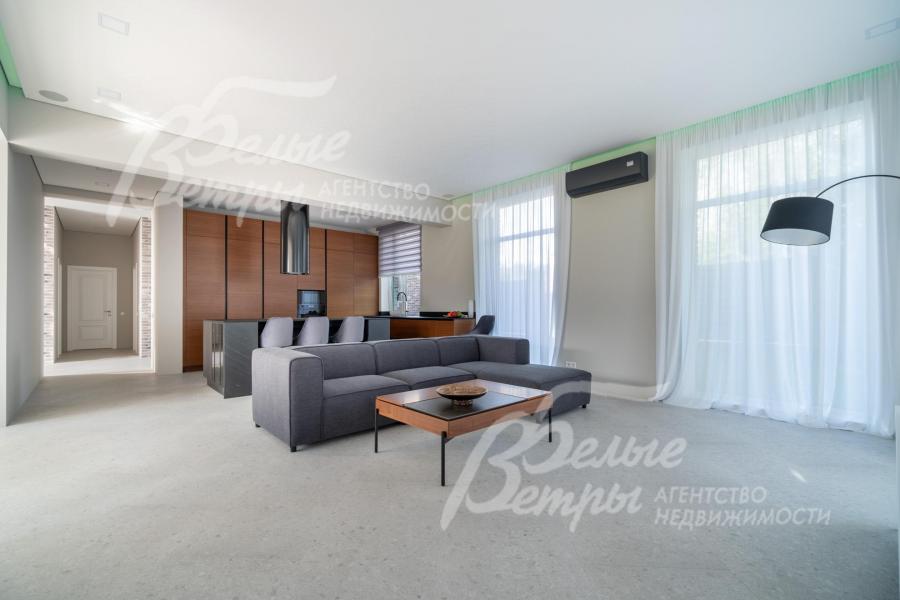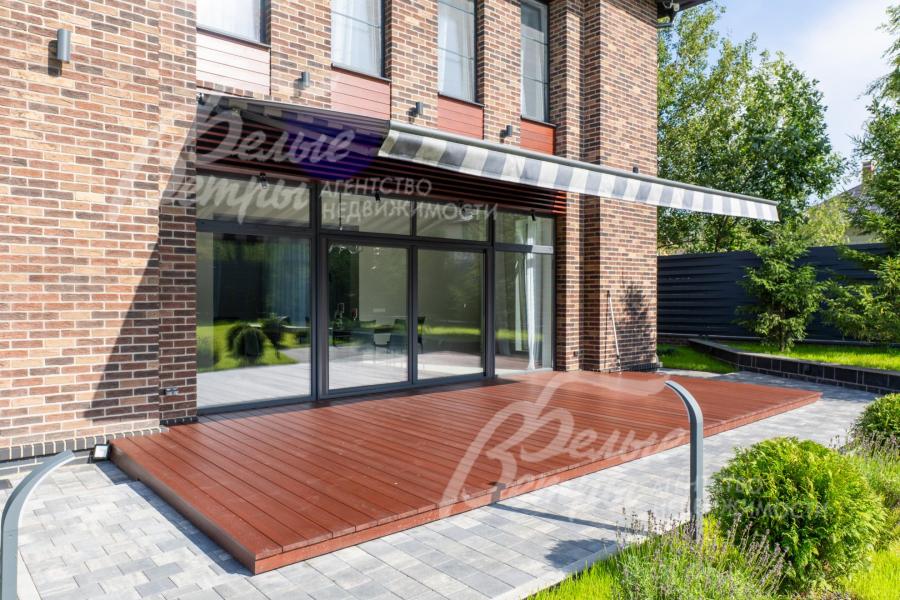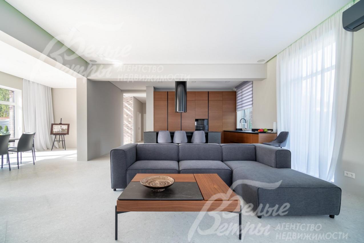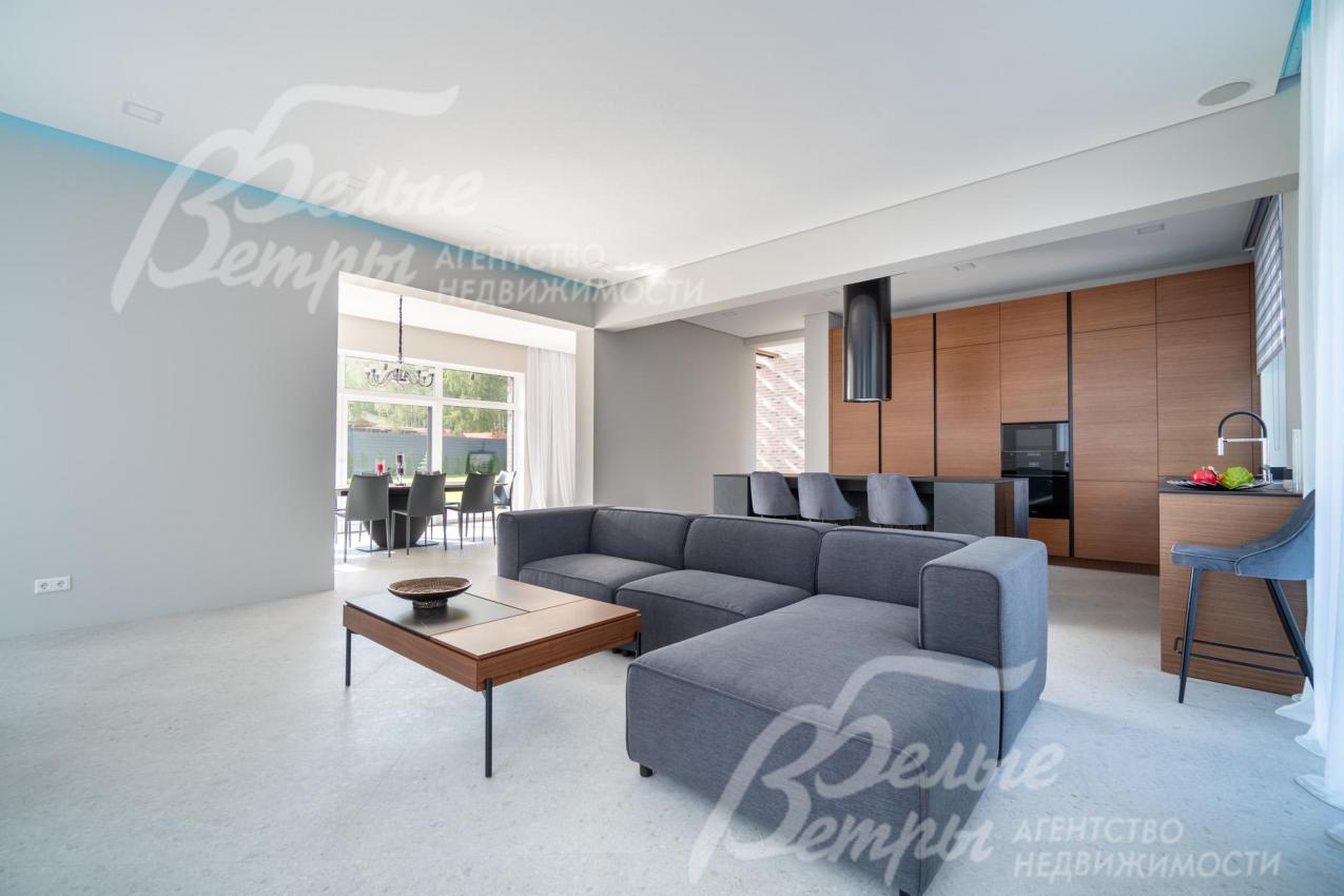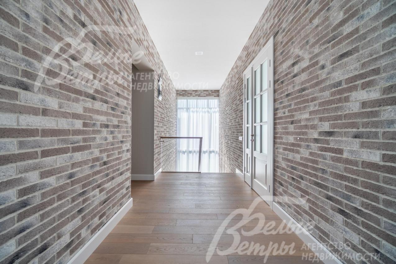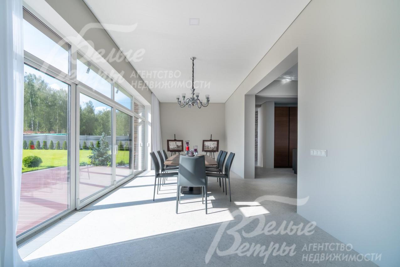 Меблированный дом с привлекательной современной архитектурой в стилистике Ф. Л. Райта, построен из дорогостоящих надёжных материалов, фасад облицован кирпичом ручной формовки со вставками из лиственницы экстра класса, оснащён передовыми инженерными системами. В доме – панорамные окна, 2хсветный холл, пять спален (одна – на первом этаже), большая терраса с маркизой, квартира для персонала. Интерьер дома выполнен по авторскому проекту с элегантным сочетанием минимализма и лофта. Дом стоит на зелёном участке с эффектным ландшафтным дизайном в 65 м от леса. Высажены ели, туи, лаванда, шалфей, цветы, газон. Есть автополив, теплый гараж на 2 авто и открытая парковка на 6 автомобилей. Охраняемый коттеджный посёлок с центральными коммуникациями, вблизи полная городская инфраструктура.