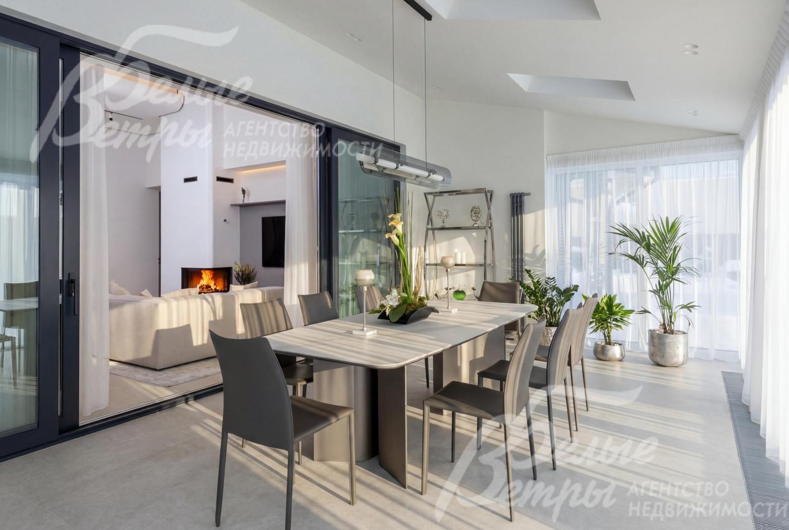 Столовая зона с панорамным остеклением и выходом на участок