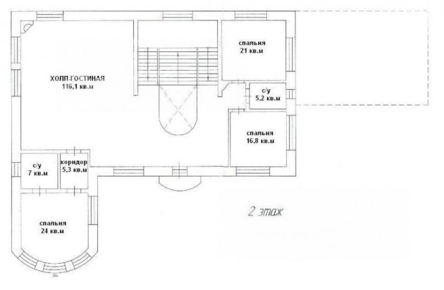 2-ой этаж: холл-гостиная с камином 116 кв.м (установлен бильярд), спальня 17 кв.м, общий с/узел 5 кв.м, спальня 21 кв.м, Главная спальня 24 кв.м с с/узлом 7 кв.м