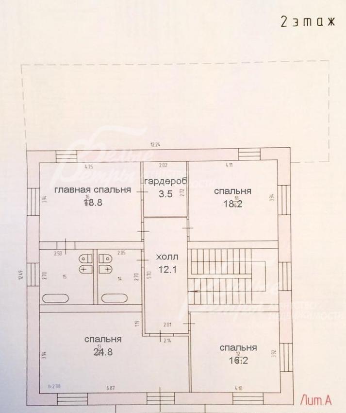 2-ой этаж: Холл 12 кв.м, спальни 16 кв.м, 18 кв.м, 19 кв.м и 25 кв.м с гардеробной, ванной комнатой 8 кв.м и балконом, санузел 5 кв.м