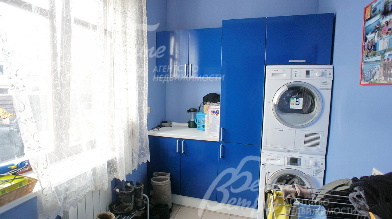 Мебель, оборудование: Каждая спальня оборудована спальным гарнитуром (Италия), шторы, в ванной шкафы, тумбы, в гостиной стол и гарнитур мягкой мебели, на кухне кухонный гарнитур с эффектом искусственного старения, столешница натуральный камень (Италия), техника AEG и Bosch, на веранде кованная мебель, по всем комнатам карнизы со шторами, в постирочной стиральная и сушильные машинки Bosch