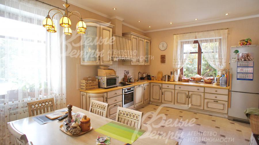 Описание внутренней отделки: современный ремонт в классическом стиле с использованием качественных материалов, вся мебель и сантехника европейских производителей, широкая дубовая лестница на второй этаж с красивой дизайнерской ковкой и дубовыми перилами. Отделка полов на 1-м эт паркетной доской, на 2-м эт ламинат, в с/узлах плитка. Установлена итальянская сантехника, разведены теплые полы в холле и в санузлах. Итальянские деревянные двери с резными филенками.