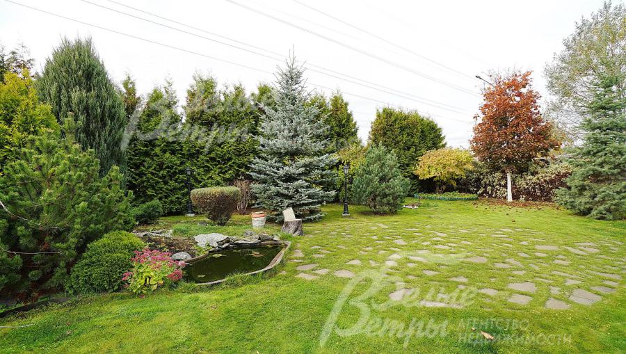 Благоустройство участка: На участке сделан ландшафтный дизайн с прудом и японской горкой, высажены 60 кустов роз, туи 20 шт по 4-5 метров, голубые ели, 5 сосен, 3 яблони, груши и прочее. Выполнен дренаж