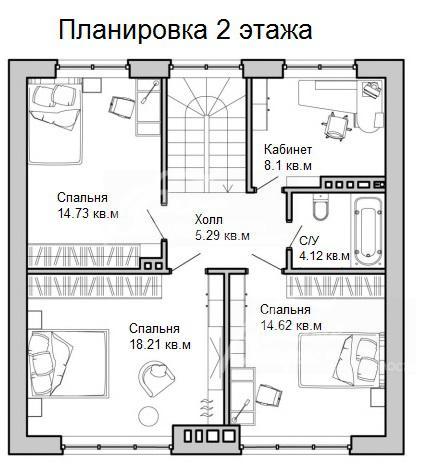 2-ой этаж: холл 5 кв.м, спальня 18 кв.м, две спальни по 15 кв.м, спальня/кабинет 8 кв.м, с/у 4 кв.м