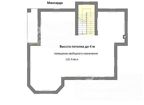 3-ий этаж: Мансарда: помещение свободной планировки 110.4 кв.м.