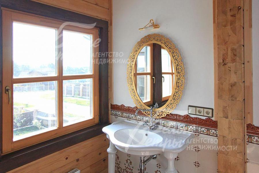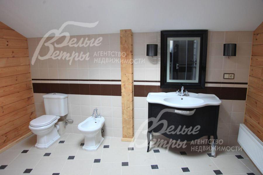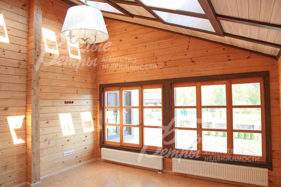 Описание внутренней отделки: Отделка выполнена дорогими качественными материалами. Стены - клееный брус (отшлифован и пропитан маслом BIOFA); полы - плитка с подогревом и паркет(массив дуба); установлен деревянный лестничный марш - лиственница; потолки - массив лиственницы; выполнена разводка коммуникаций по дому; двери и подоконники - деревянные(массив сосны)