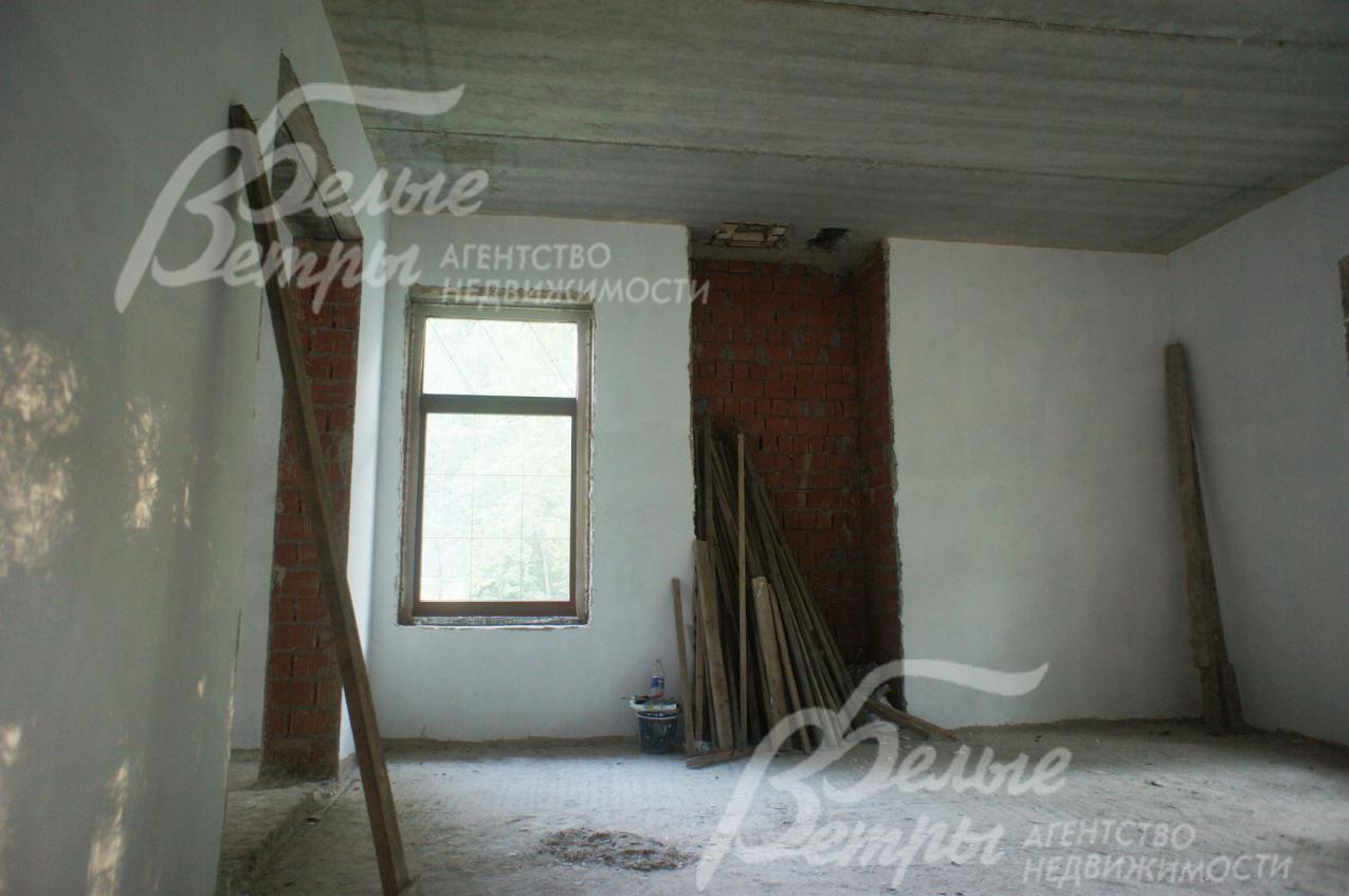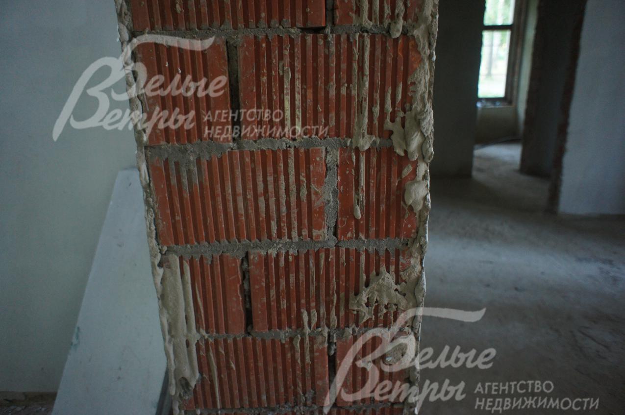 Описание внутренней отделки: Стены и потолки выровнены, ошпатлеваны, оштукатурены и покрашены. На полу стяжка. Временная деревянная лестница. В доме разведена электропроводка, вода и канализация до точек, газ заведен в дом.