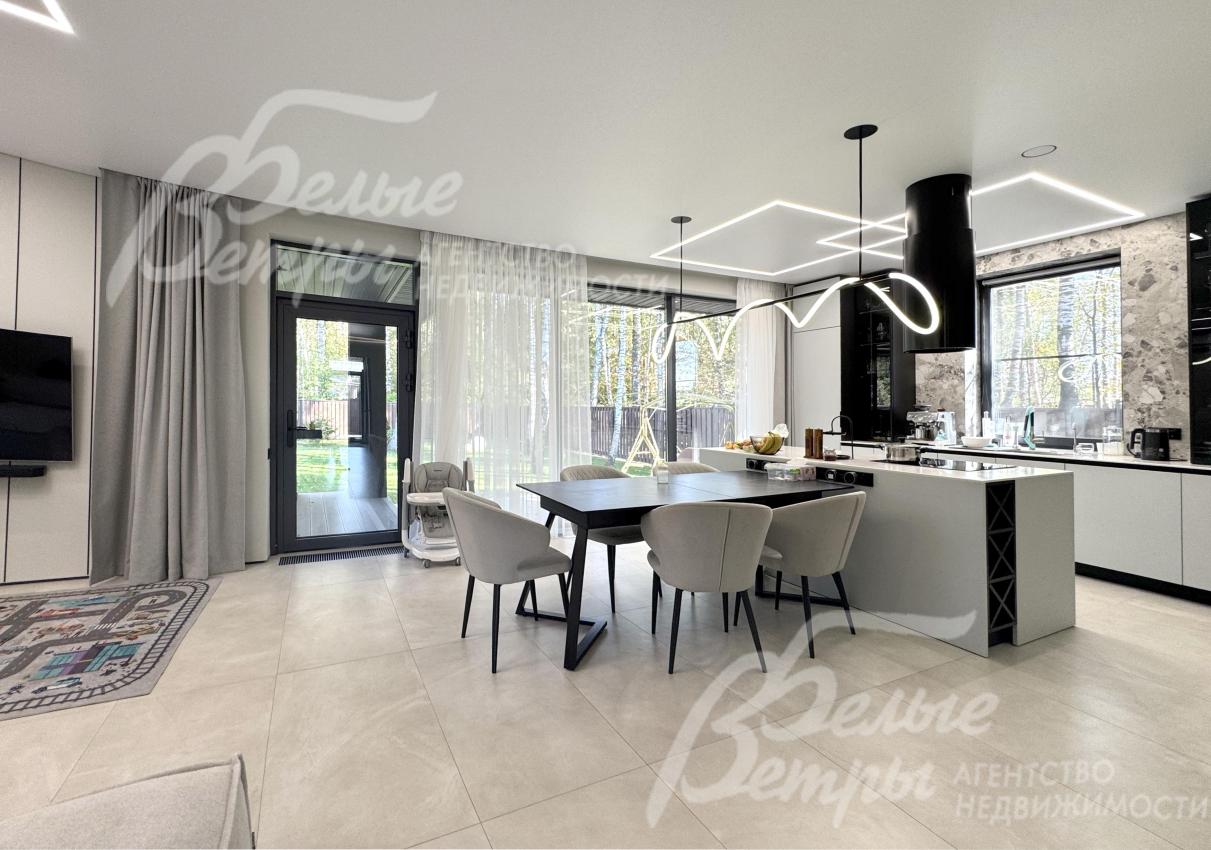 Дом, полностью меблированный и оснащённый техникой: можно заезжать и жить без дополнительных вложений. Внешнее оформление – в духе актуальных тенденций: фасад отделан ригельным кирпичом и лиственницей. Во внутренней отделке также реализованы современные решения в стиле минимализма: скрытый карниз на потолке со световыми линиями, двери скрытого монтажа, несколько сценариев освещения и другие. В доме – безупречная планировка: одна из спален – на 1-м этаже, есть терраса, много помещений для хранения. Дом стоит на компактном благоустроенном участке в березовой роще. Участок находится на второй линии от леса в коттеджном посёлке комфорт-класса с каскадом озёр и круглосуточной охраной с патрулированием.