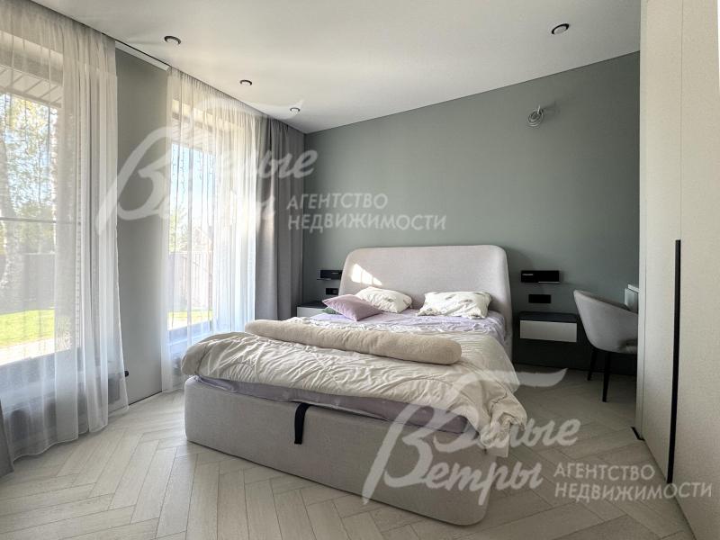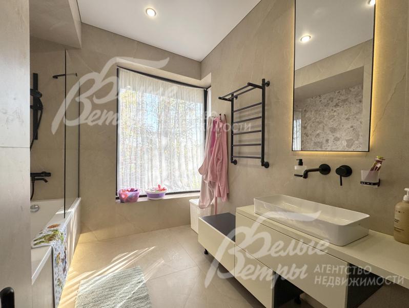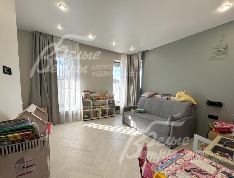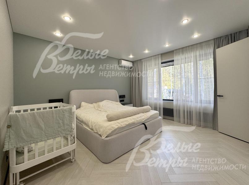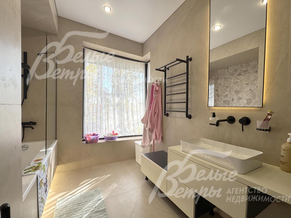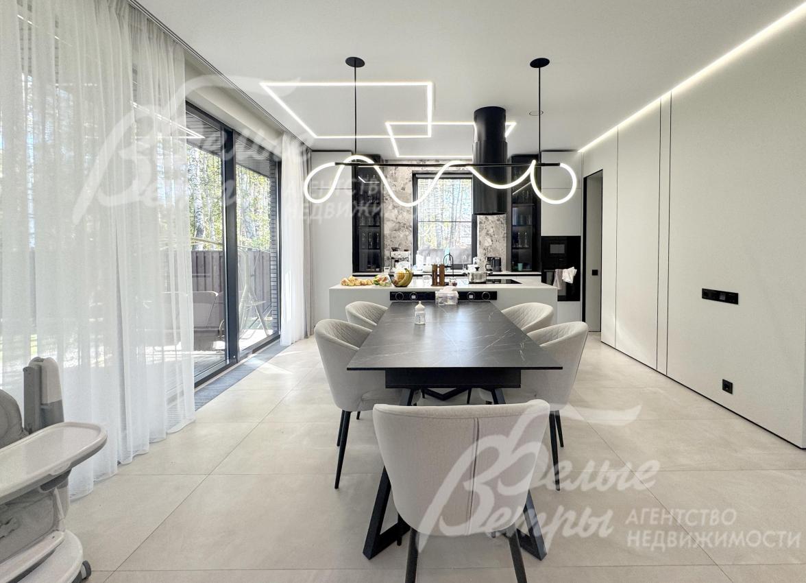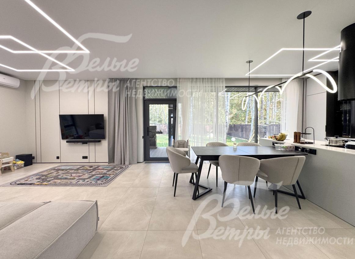 Мебель, оборудование: дом полностью меблирован и оснащён техникой. На кухне – гарнитур в трендовом цветовом решении с островом («Стильные Кухни»), столовая группа, техника: духовой шкаф, микроволновая печь, варочная плита, посудомоечная машина, встроенный холодильник Gorenje. В гостиной – большой диван, в спальнях – спальные гарнитуры, телевизоры, системы хранения в гардеробных. Есть стиральная и сушильная машины. В санузлах – встроенные душевые уголки, раковины, водяные полотенцесушители, безободковые унитазы, мебель, выполненная на заказ, в санузле мастер-спальни – отдельностоящая ванна из литьевого мрамора