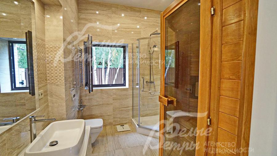 Безукоризненный дом со стильной дизайнерской отделкой, дорогой мебелью и оборудованием. Отличный вариант для молодой семьи. Высокие окна, потолки, двери, 2 большие террасы (крытая и открытая). Рациональная планировка, спальня на 1-м этаже. Красивый участок с молодыми березами. Охраняемый поселок с центральными коммуникациями.