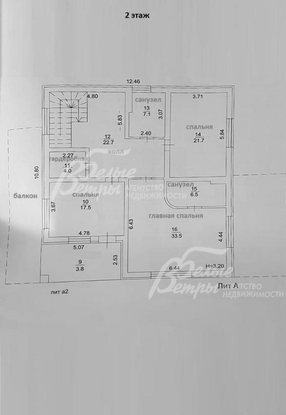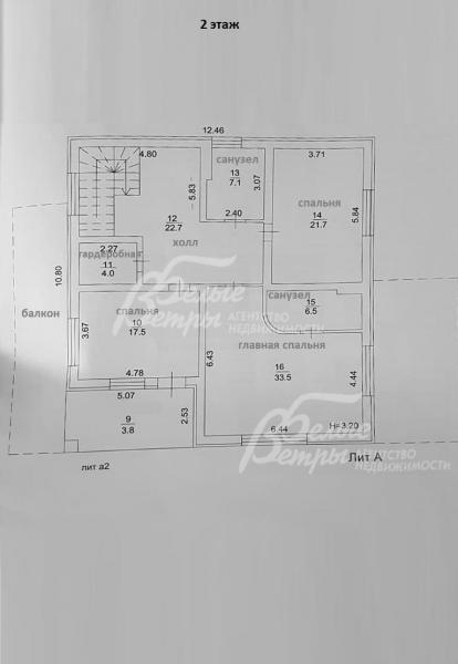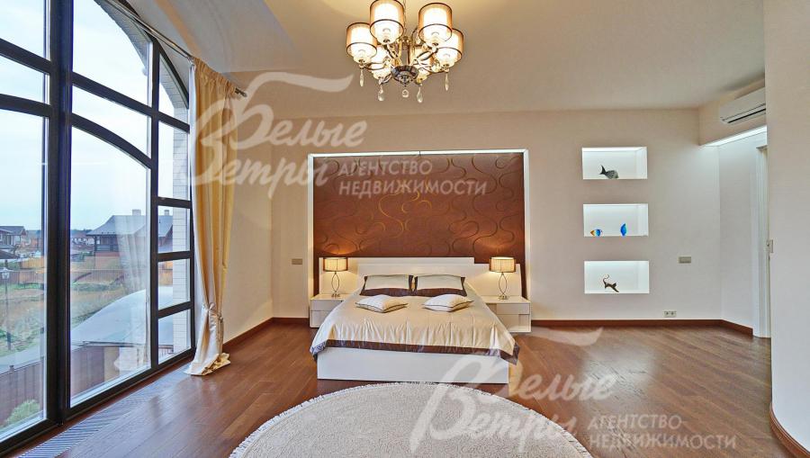 2-ой этаж: спальня 22 кв.м, главная спальня 33.5 кв.м с санузлом 6.5 кв.м, спальня 17.5 кв.м с выходом на балкон 12 кв.м, холл 23 кв.м, гардеробная 4 кв.м, санузел 7 кв.м;