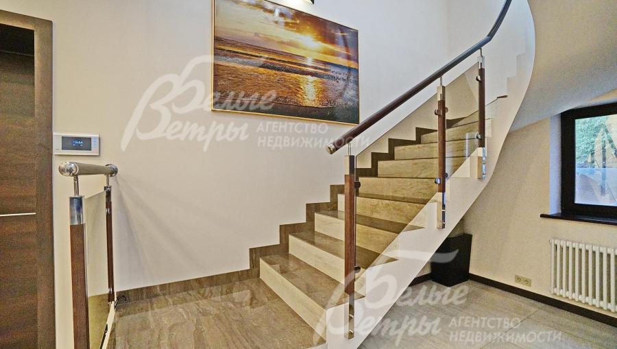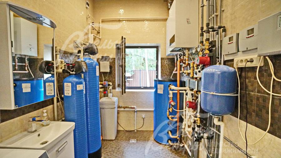 Инженерное обеспечение: Buderus + эл.котел Protherm , бойлер косвенного нагрева + эл.бойлер 80л, 3-х ступенчатая очистка воды Gidrowell, вентиляция в доме естественная приточная; установлены инверторные кондиционеры (Toshiba) в гостиной, в холле второго этажа и в главной спальне;есть сигнализация (Гольфстрим);