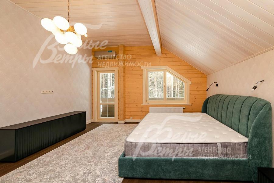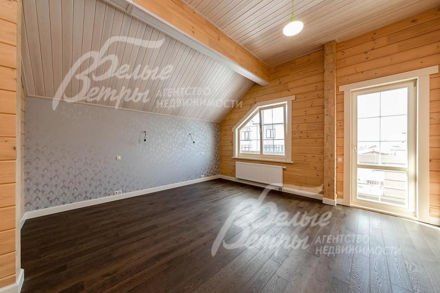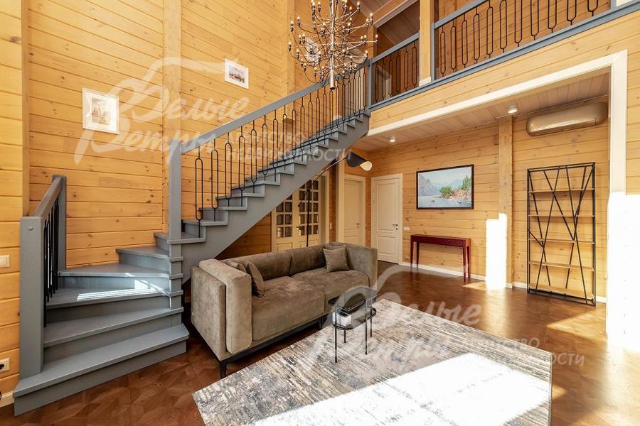 Описание внутренней отделки: выполнена красивая внутренняя отделка под ключ. На полу дубовый модульный паркет, керамогранит, в санузлах - плитка. Теплый пол в зоне плитки. Деревянная лестница стандартной ширины покрашена в серый цвет, перила деревянные, ограждение - металлическое. Потолок обшит деревом, выполнено точечное освещение. Установлена сантехника итальянского производства. Все коммуникации разведены под ключ. Деревянные межкомнатные двери и подоконники.