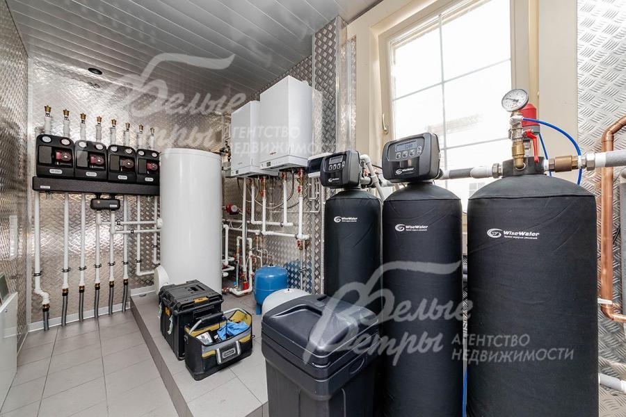 Инженерное обеспечение: в доме установлены 2 котла Viessmann по 24 кВт и трехфазная система очистки воды. В каждой комнате установлен кондиционер, увлажнитель и очиститель воздуха.