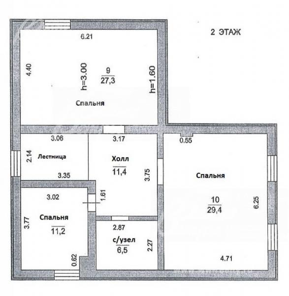 2-ой этаж: холл 11.5 кв.м, 3 спальни - 27 кв.м, 29.5 кв.м и 11 кв.м, с/узел 6.5 кв.м