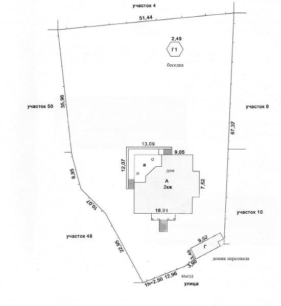 Общая площадь строений: 630 м2 (Дом 595 кв.м+дом персонала 35 кв.м)