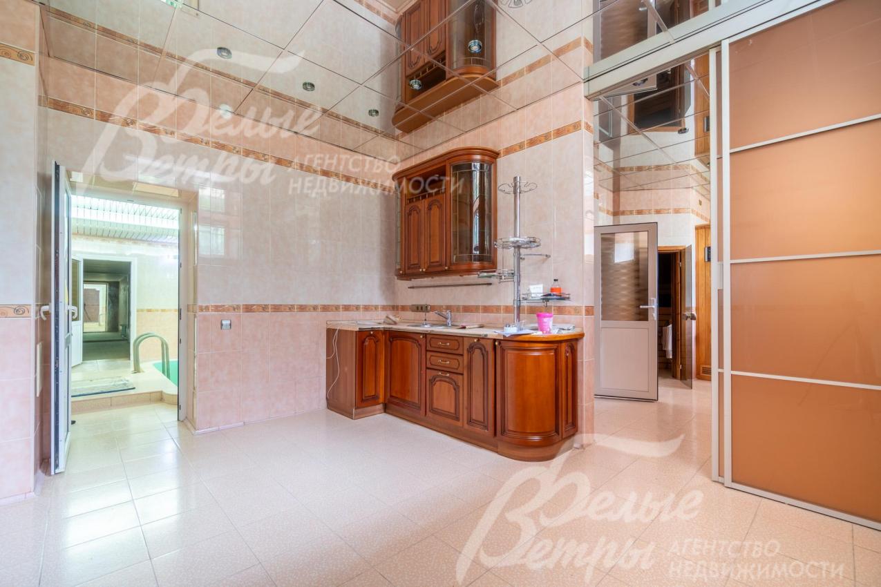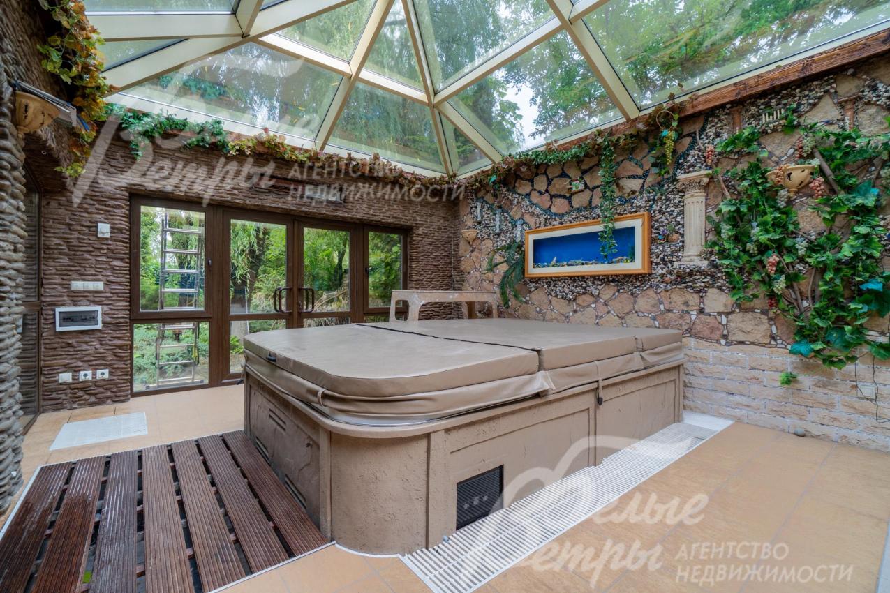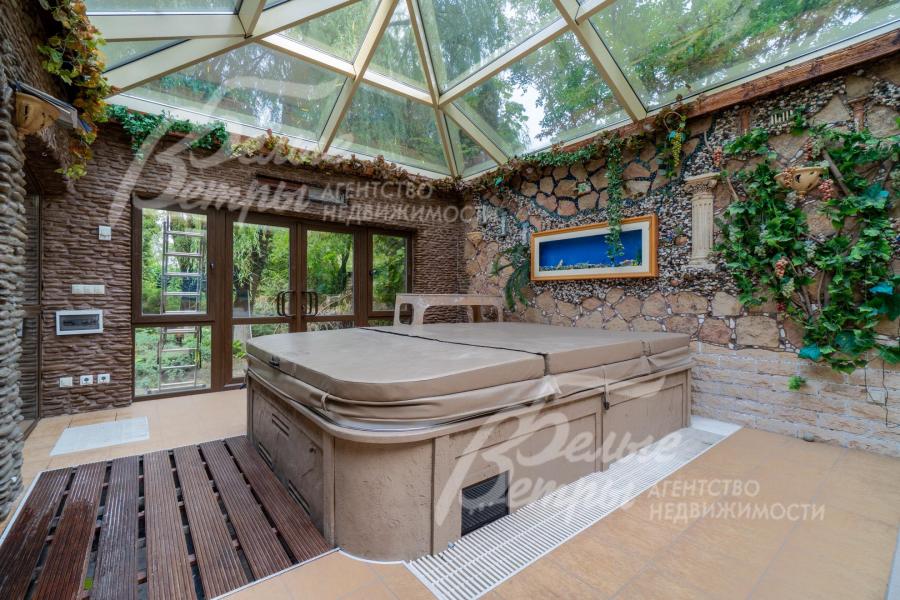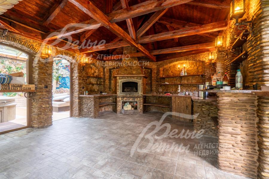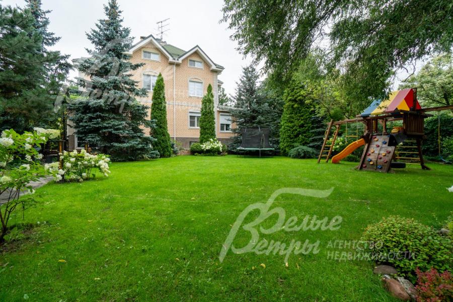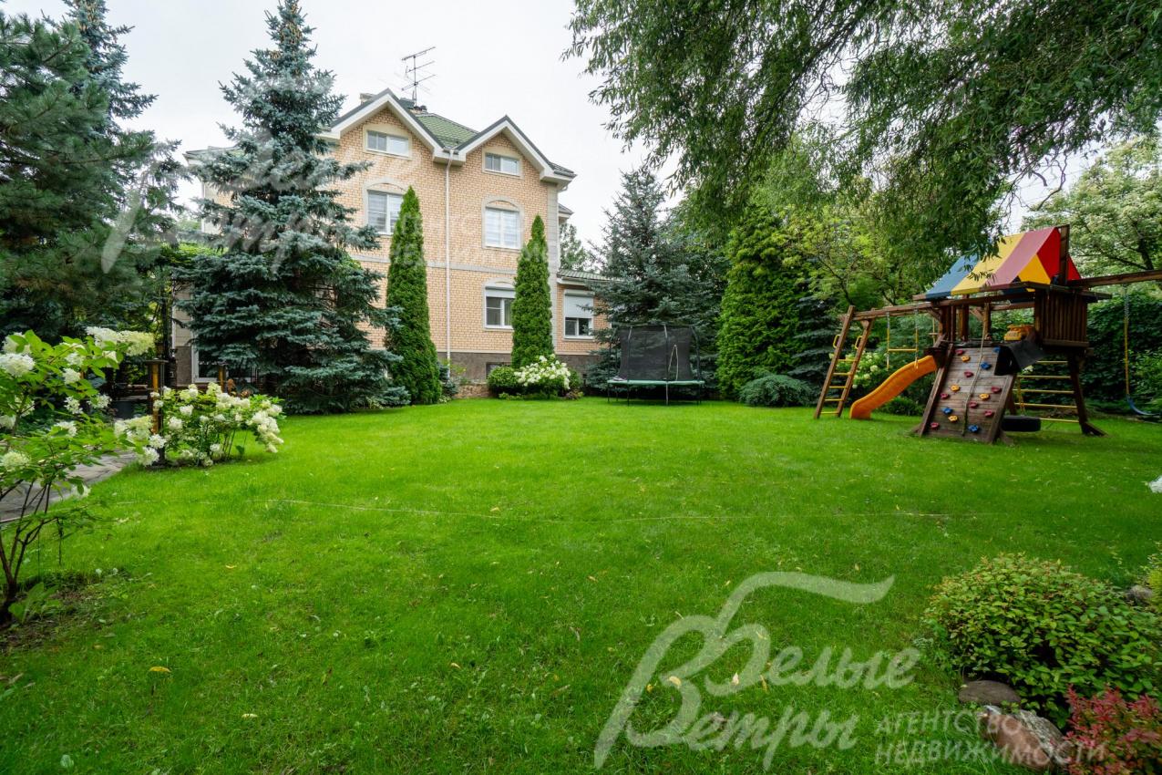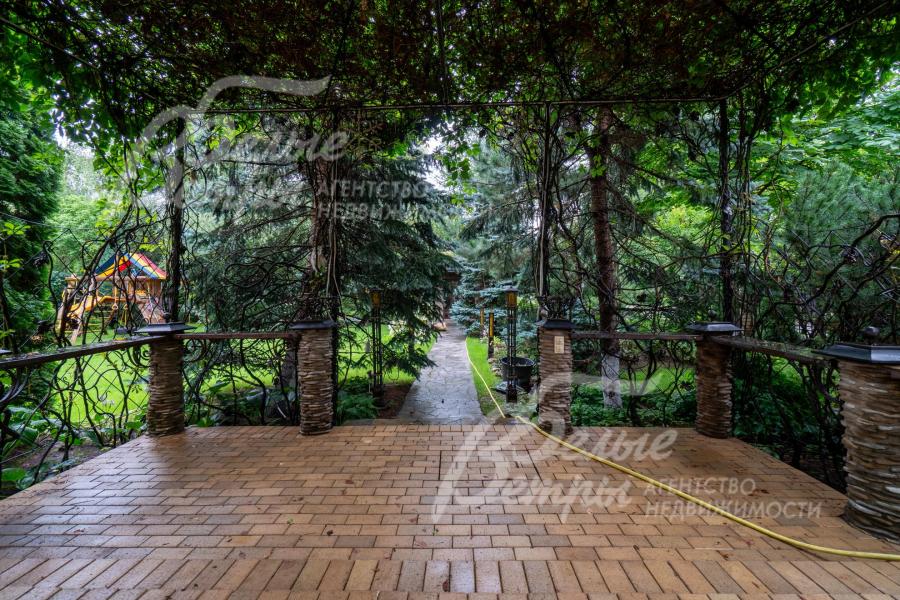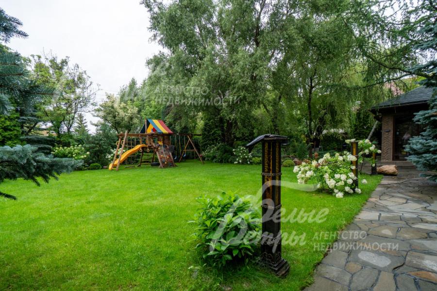 Кирпичный дом в классическом стиле для большой семьи, полностью обустроенный и готовый к заселению. В просторной планировке: 6 спален, спа-зона на цокольном этаже с бассейном 9×3 м, сауной, ИК-парной, спортзал, зимний сад, квартира для персонала, жилой мансардный этаж с большим холлом с барной зоной. Дом стоит на просторном участке, утопающем в зелени, с эффектным премиальным парково-лесным ландшафтом. Над террасой – зелёный купол, высажены лесные и плодовые деревья. На участке есть декоративный пруд, прогулочные аллеи, беседка для СПА и барбекю, садовая зона с грядками и теплицей, детский игровой комплекс. Участок находится в камерном охраняемом коттеджном посёлке бизнес-класса рядом с лесным массивом и с инфраструктурой в пешей доступности.