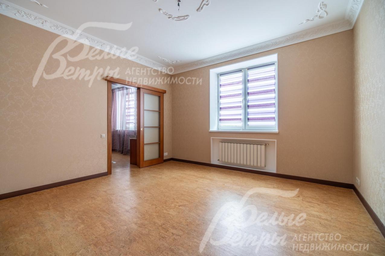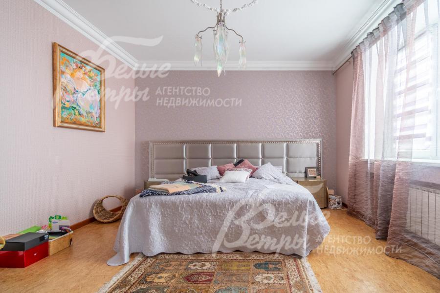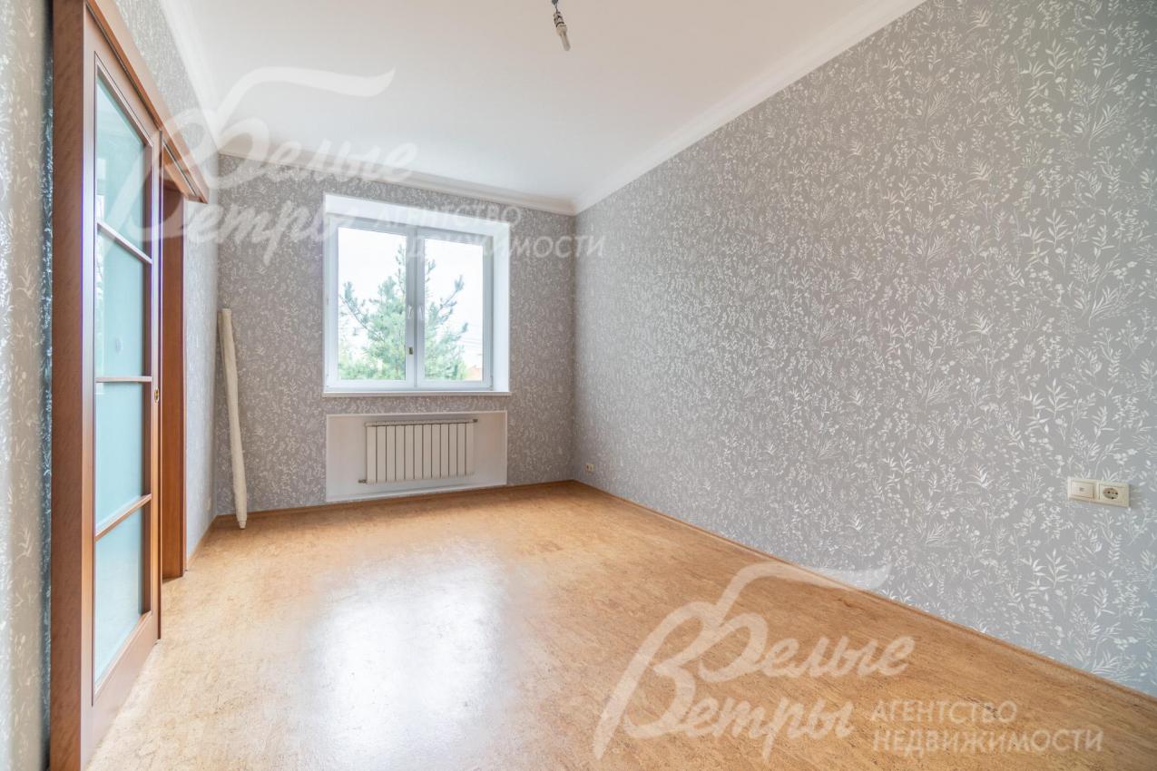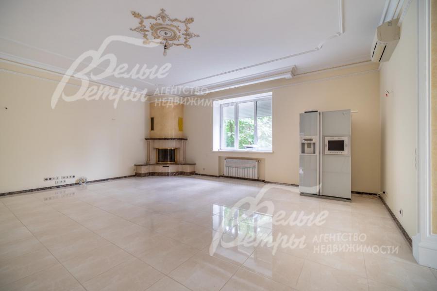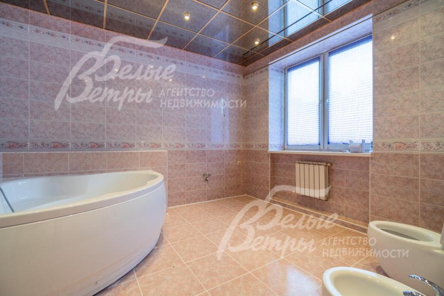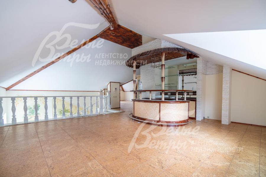 Описание внутренней отделки: выполнена отделка в пастельной гамме из дорогостоящих материалов высокого качества. Стены покрашены в светло-бежевые тона, в коридорах, на лестничных пролётах – панно в классическом стиле и элементы росписи, в спальнях поклеены обои, в санузлах выложена плита, в спортивном зале – крашеные стены, одна стена – зеркальная. На полу 1-го и цокольного этажей – плитка и керамогранит, в холлах 2-го и мансардного этажей – пробка, в спальнях – ламинат, в спортивном зале – ковролин. Потолки из гипсокартона. Установлены двери из массива дерева и подоконники ПВХ. На 2-й и мансардный этажи ведёт бетонная лестница со ступенями из натурального мрамора бело-серого оттенка. Гостиную украшает угловой камин