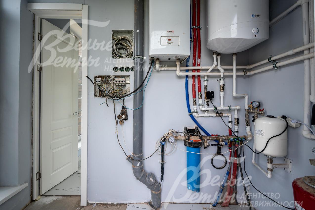 Инженерное обеспечение: разведено отопление и теплые водяные полы, э/э разведена до точек, установлен газовый котел и бойлер косвенного нагрева. Вентиляция естественная приточно-вытяжная.