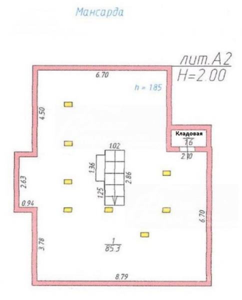 3-ий этаж: помещение свободного назначения: кабинет 85 кв.м, кладовая