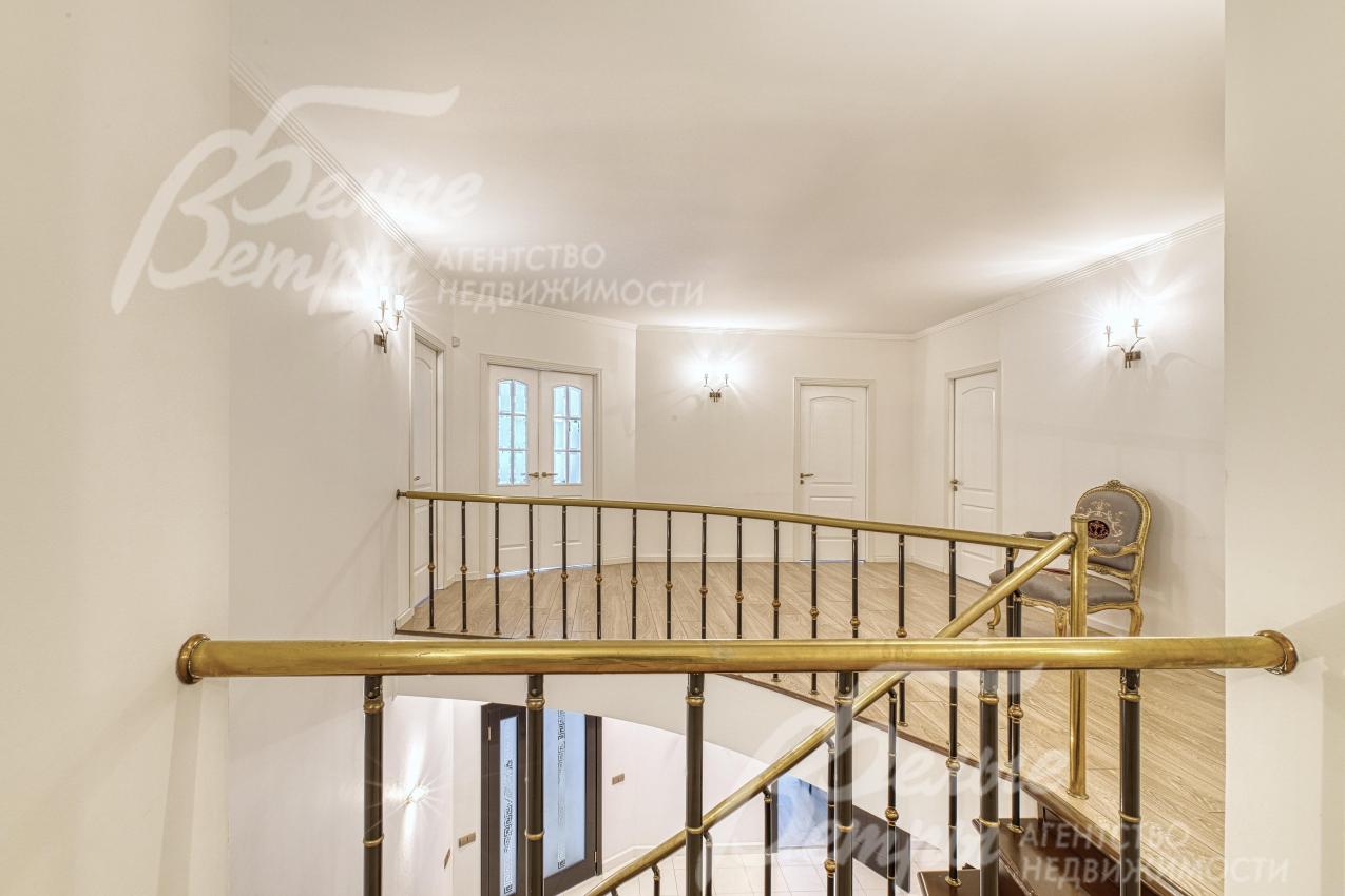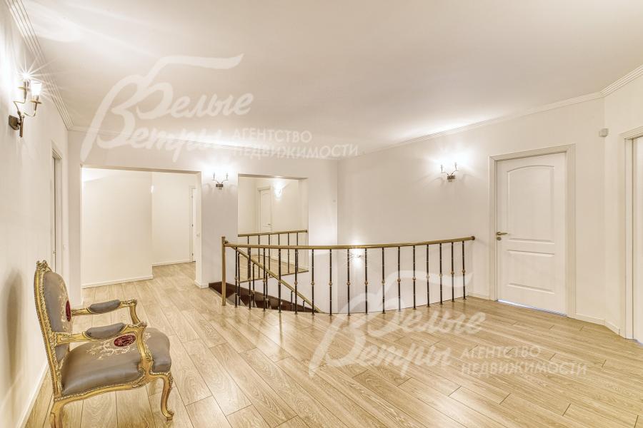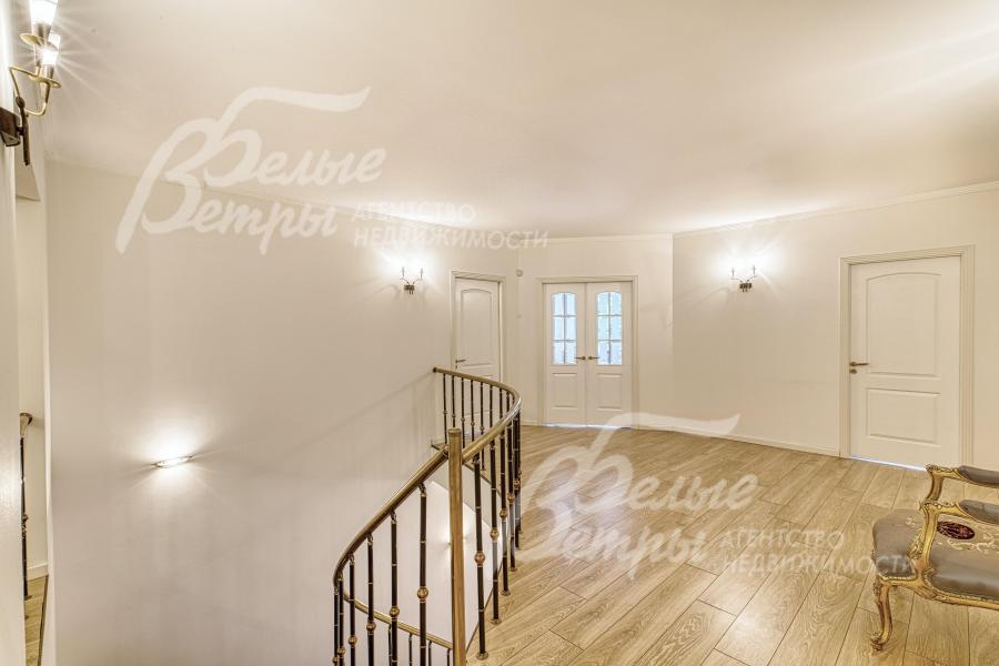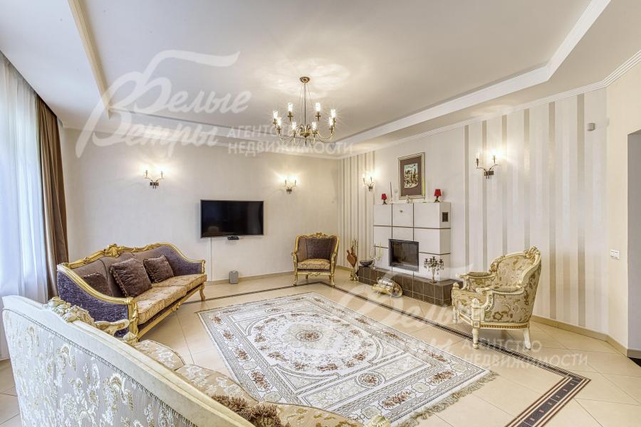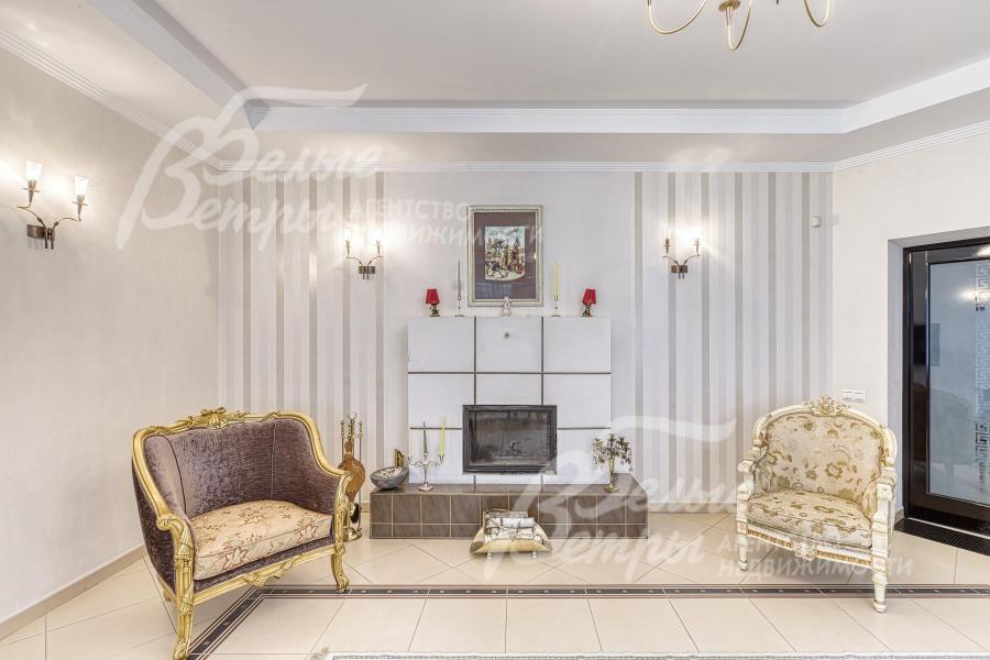 Описание внутренней отделки: выполнена отделка под ключ, материалы – премиальные, испанского и итальянского производства. На стенах поклеены обои, на полу 1-го этажа - плитка, на полу 2-го этажа - паркетная доска и штучный паркет. Потолки – многоуровневые со встроенным освещением. Установлены межкомнатные двери, изготовленные по индивидуальному заказу, из массива дуба с лаковым покрытием, пластиковые подоконники, кованые решетки на всех окнах. В санузлах – тёплые полы. На второй этаж ведёт железобетонная лестница со ступенями, отделанными дубом