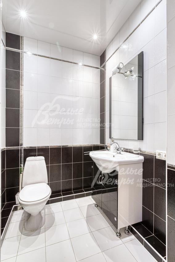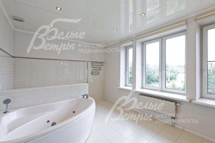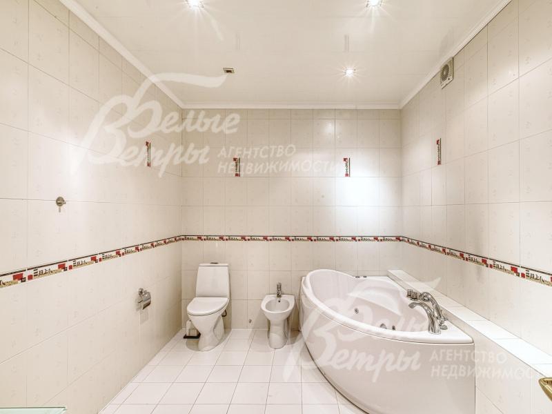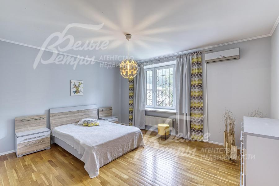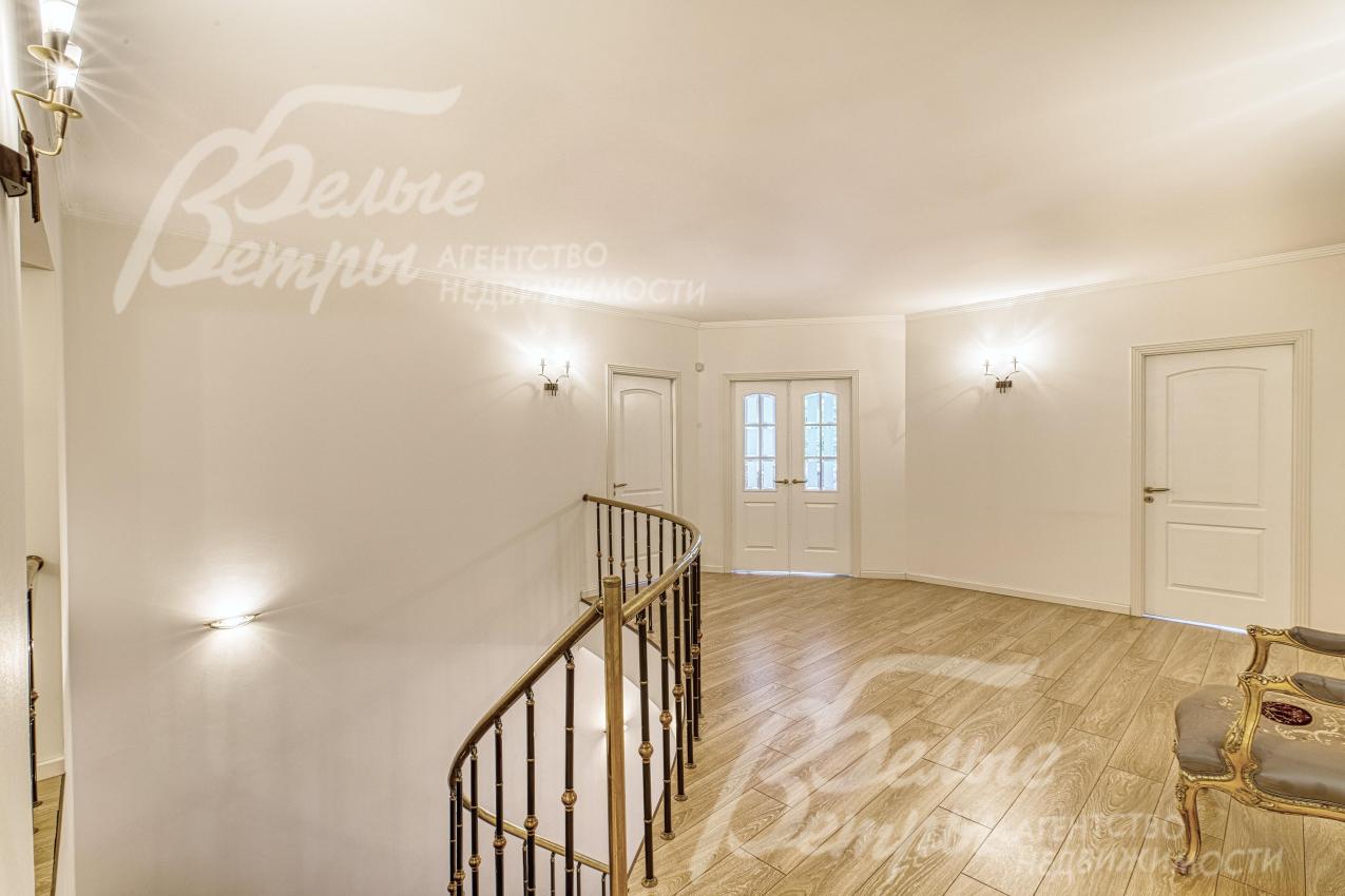 Описание внутренней отделки: выполнена отделка под ключ, материалы – премиальные, испанского и итальянского производства. На стенах поклеены обои, на полу 1-го этажа - плитка, на полу 2-го этажа - паркетная доска и штучный паркет. Потолки – многоуровневые со встроенным освещением. Установлены межкомнатные двери, изготовленные по индивидуальному заказу, из массива дуба с лаковым покрытием, пластиковые подоконники, кованые решетки на всех окнах. В санузлах – тёплые полы. На второй этаж ведёт железобетонная лестница со ступенями, отделанными дубом