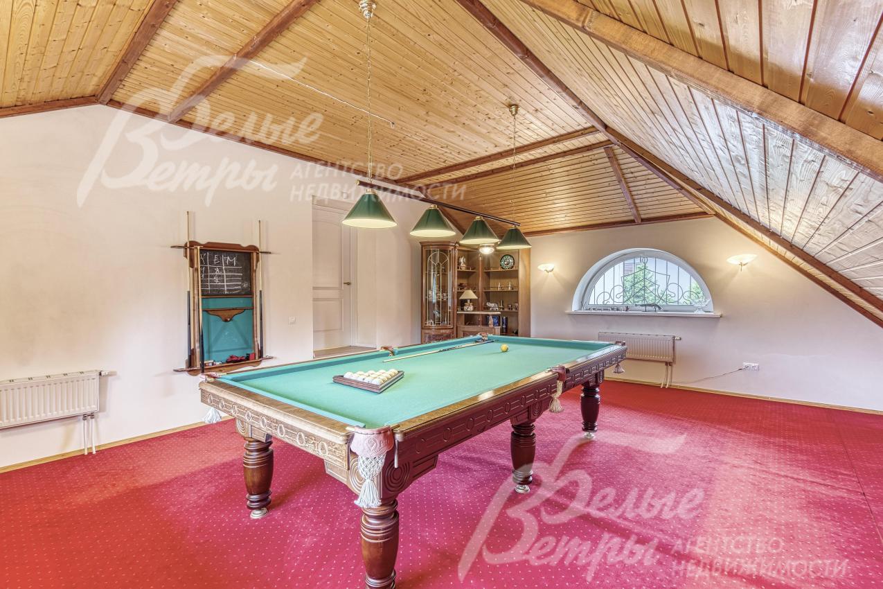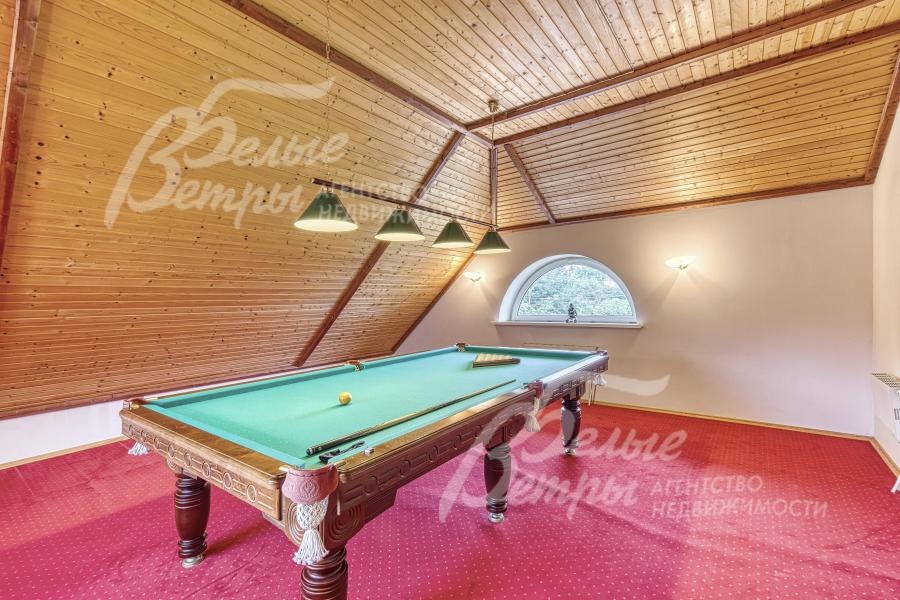 Элегантный меблированный кирпичный дом в стиле фьюжн со множеством зон для полноценного отдыха и развлечений. В доме есть бассейн, джакузи, ИК-сауна, фитобочка, бильярдная, большая детская игровая. В интерьере – высокие потолки с многоуровневым освещением и европейские отделочные материалы, дополненные изящной мебелью. Дом стоит на участке, граничащем с лесом. Ландшафт участка объединяет классическую парковую концепцию и природную лесную зону с реликтовыми деревьями. Участок украшают цветники, альпийская горка, есть детская площадка, закрытые беседки и зона барбекю. В сервисных строениях – квартира для персонала, мастерская, гостевые комнаты. Участок находится в окружении достойных соседей в охраняемом коттеджном посёлке рядом с городской инфраструктурой.
